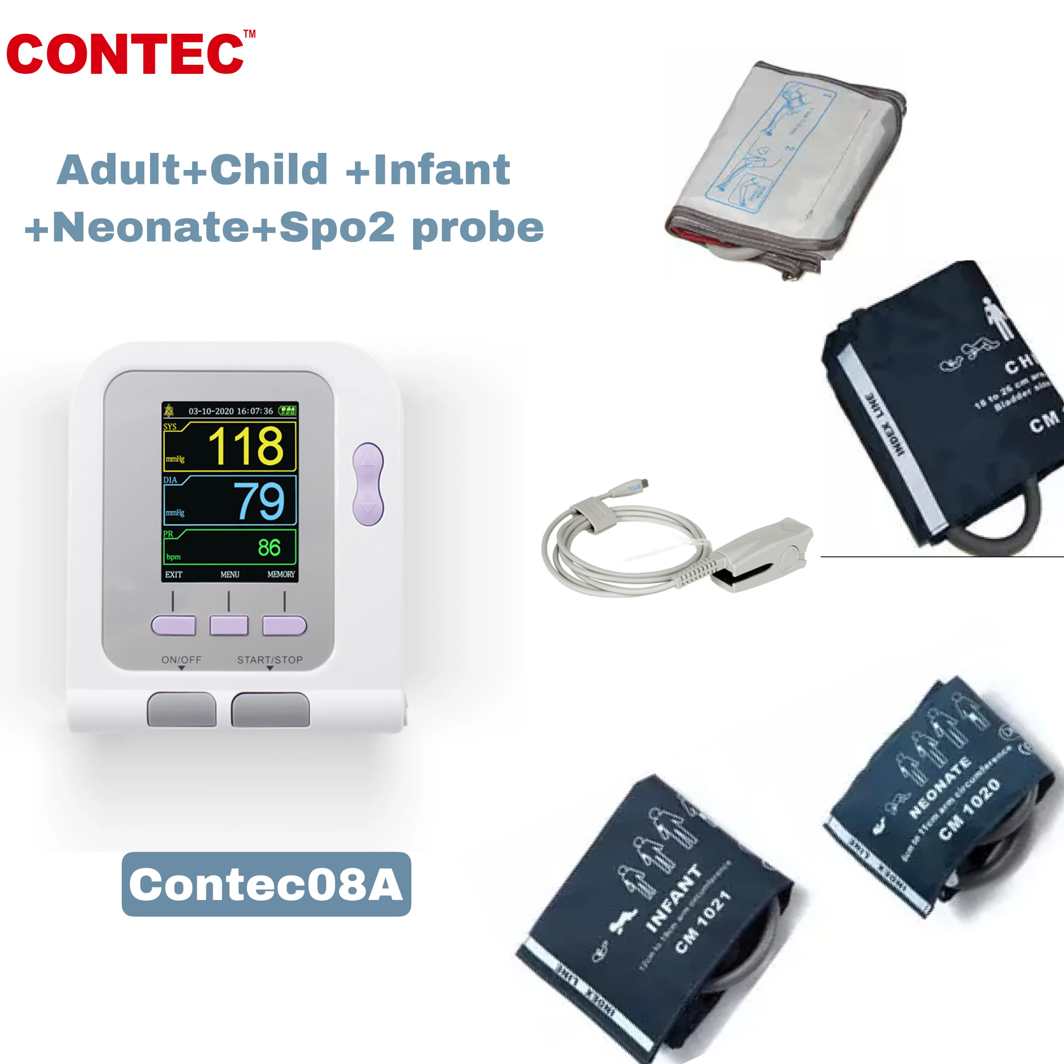 Цифровой цветной ЖК-монитор артериального давления, программный анализ, датчик SPO2 + 4 манжеты (взрослые, дети, педиатрические, новорожденные манжеты)