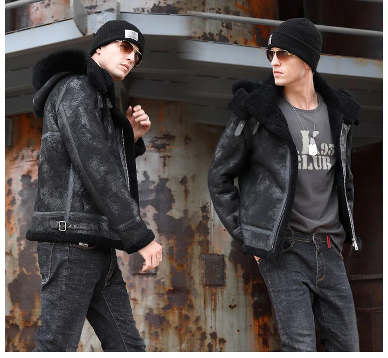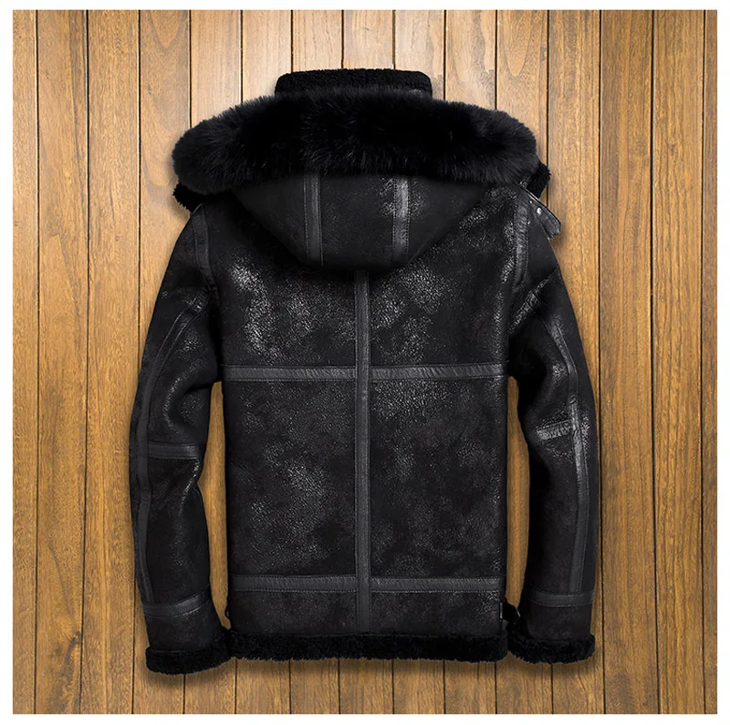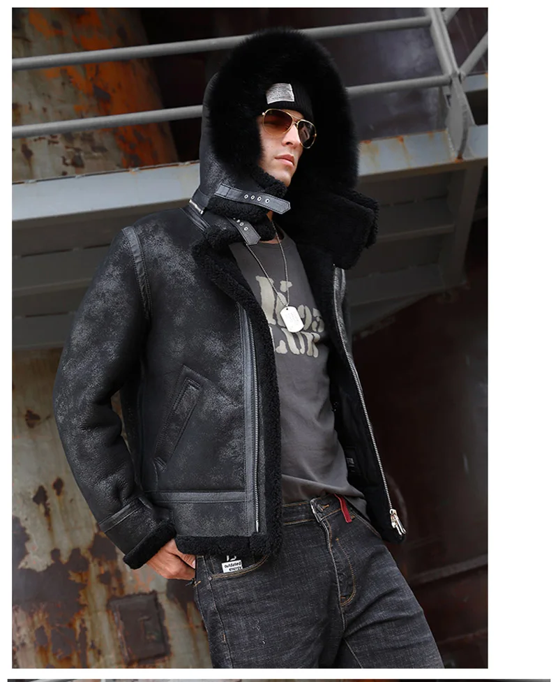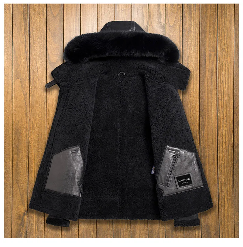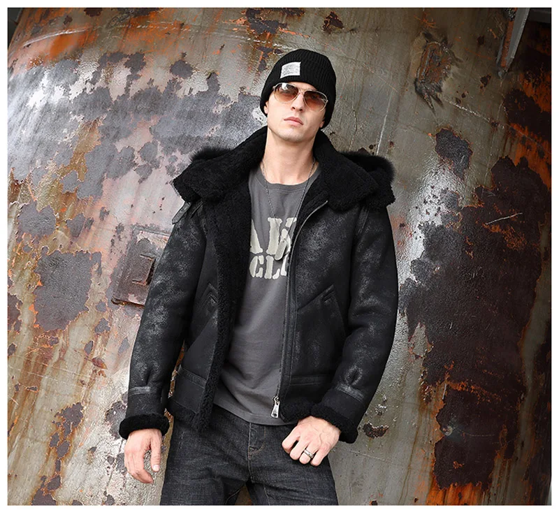 Мужская длинная шуба из овчины, черная шуба из натуральной овчины с серебристым лисьим мехом на капюшоне, 4XL, 2019