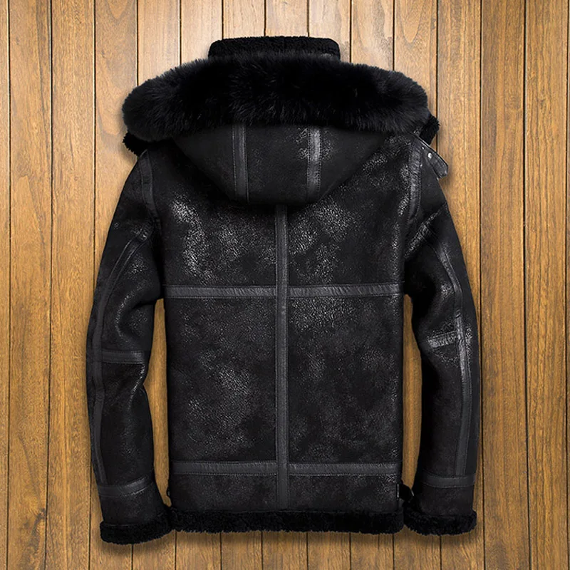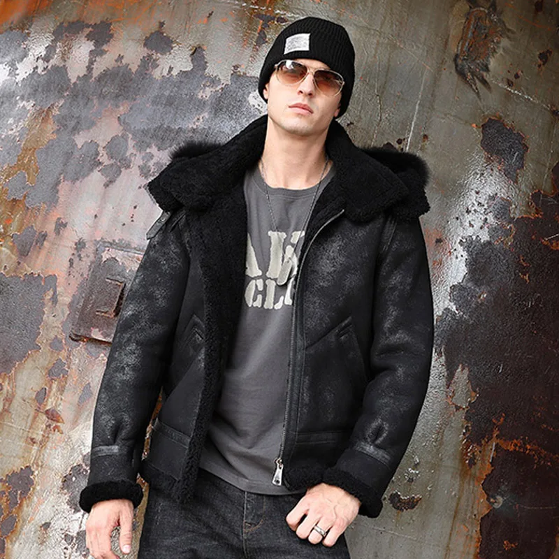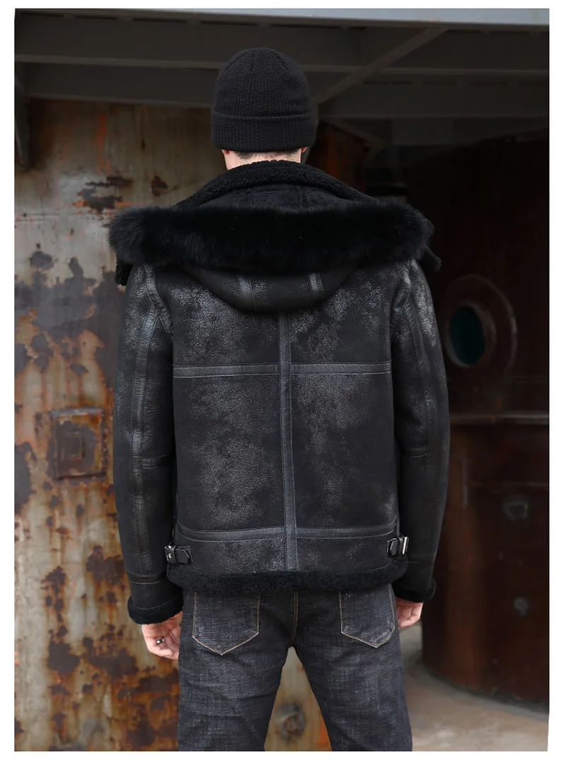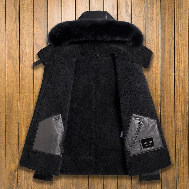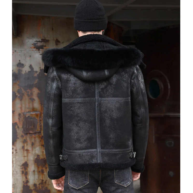 Мужская длинная шуба из овчины, черная шуба из натуральной овчины с серебристым лисьим мехом на капюшоне, 4XL, 2019