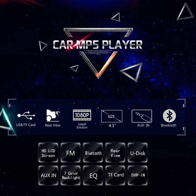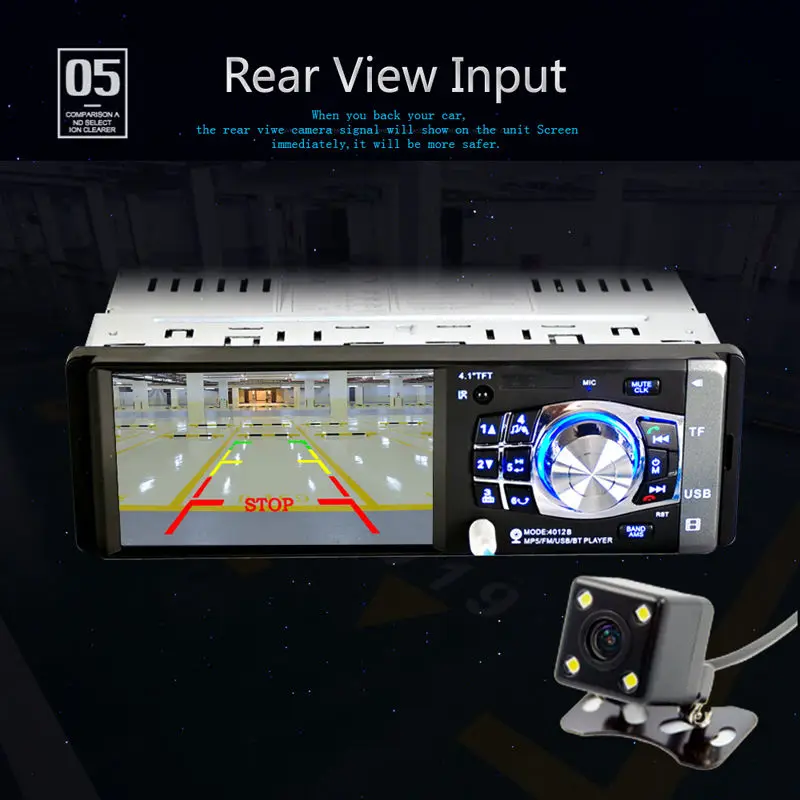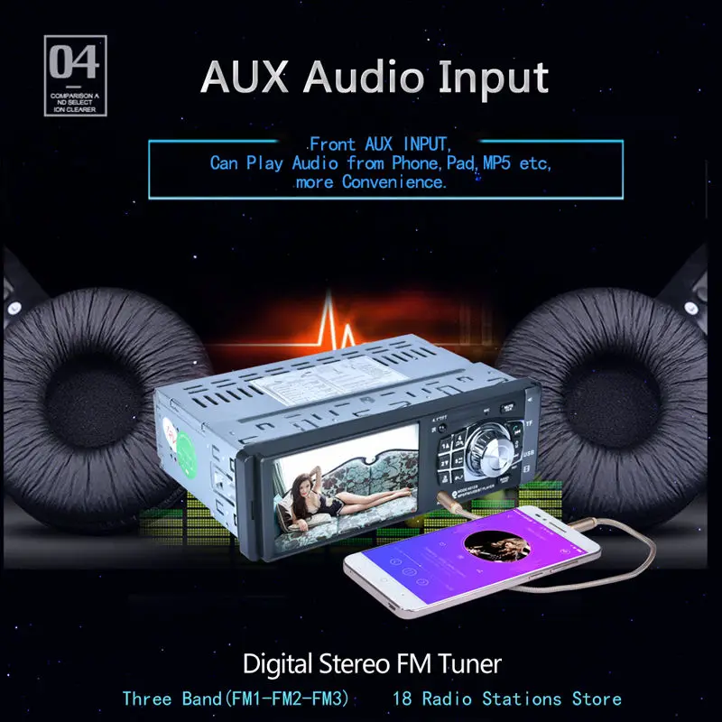 100% новый и высокое качество Пульт управления рулем 4,1 дюймовHD TFT большой цветной ЖК-экран, четкий и яркий, динамический Макс. Выходная мощность: MOSFET Высокая мощность 4*50 Вт USB/TF/MP5/WMA/WAV/APE/FLAC плеер Вход Aux Fm-приемник Электронная система Предустановленный эквалайзер (Поп/Рок/класс) 18 наборов памяти (18FM) Повторяющийся/случайный/Intro play цифровой дисплей часов Пульт дистанционного управления Fuil Характеристики тюнера: FM 87,5-108 МГц Размер: 182x52x5 см (прибл.) Напряжение: 12 В Товар Вес: 0,8 кг USB разъем, USB имеет музыку в USB подключение можно играть Слот для tf-карты, tf-карта имеет музыку в tf-разъем для воспроизведения Спецификация: