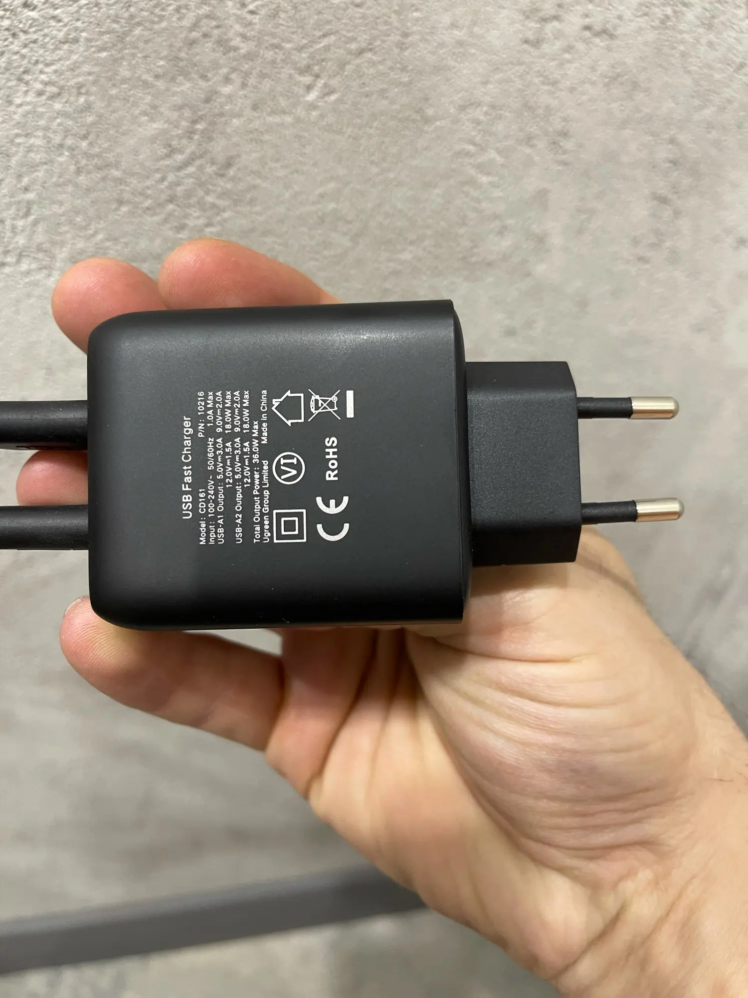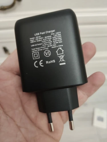 Пришло быстро. Немного кривая вилка. На работу не влияет. Быстрая зарядка телефон подхватил сразу. За час 75% зарядил 4000мАч аккум. Рекомендую.