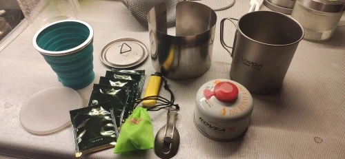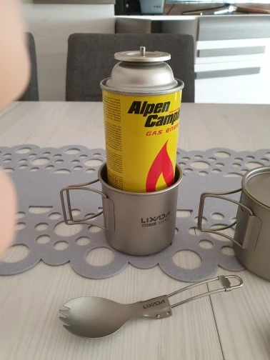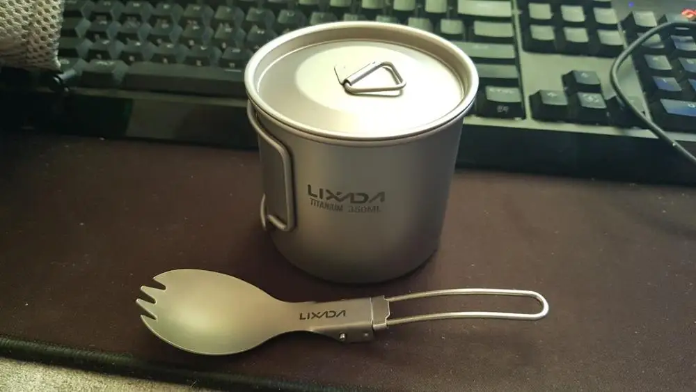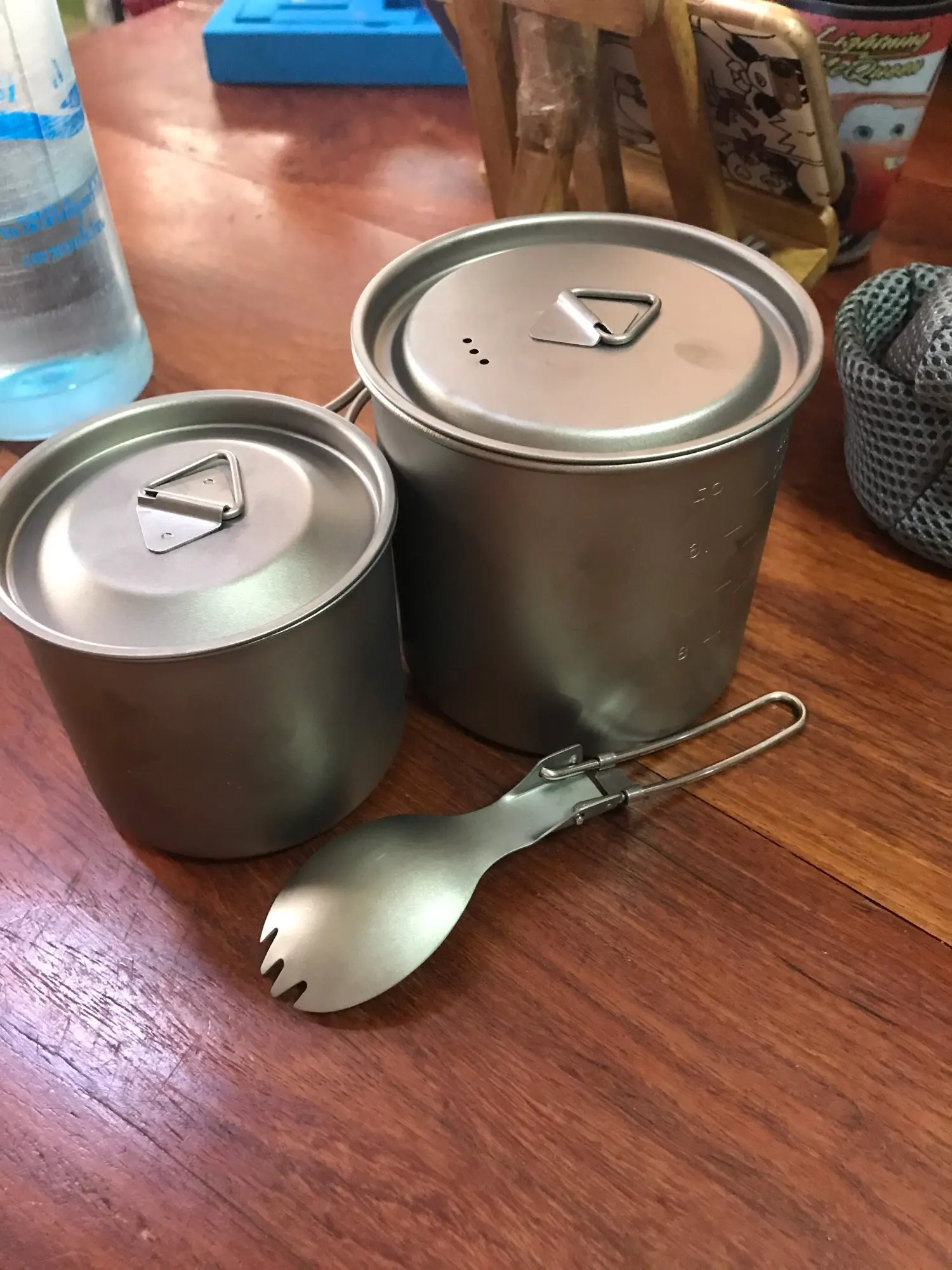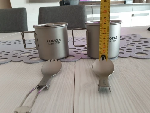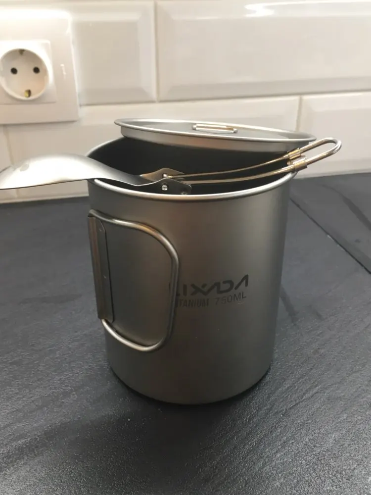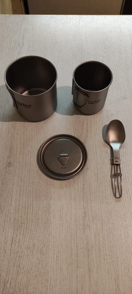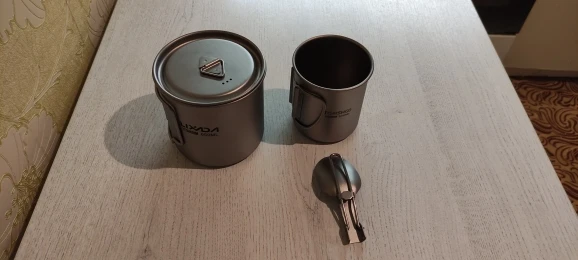 Кружка металл тонковат, ложка складная не думаю что надёжна, есть сомнение что титан, ложка не складная не титан, нержавейка.