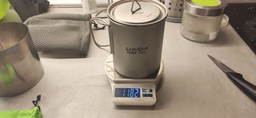 отличная кружка для одиночного похода, чтобы не расплескать при кипячении, воды следует заливать не больше 600-650 мл. вес с крышкой 119гр. внутрь входит балон 100 гр, горелка, зажигалка, экран от ветра, титановая ложка, так же остается место для чая, соли и сахара, думаю на три-пять дней одиночки, без проблем.