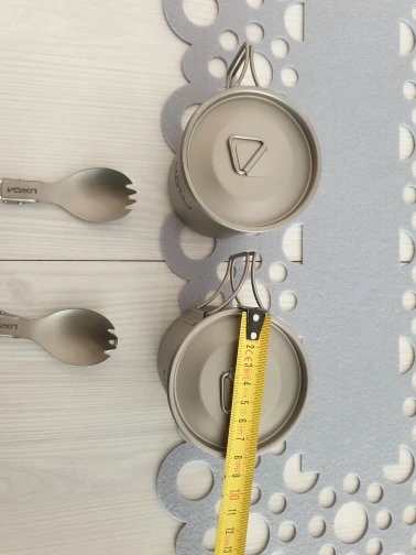 Довольно тонкий котелочек, если руками сжать можно погнуть думаю. брал специально под бутыль klean kanteen wide 40oz, влезает хорошо. Ложковилка изначально слабо фиксировалась в открытом положении, шпеньки за счет которых она фиксируется очень хилые, подогнул края плоскогубцами стало получше