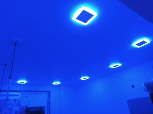 Хорошие светильники. Продавец тоже отличный. Первая посылка потерялась, при втором заказе продавец отдал товар по старой цене. Голубая подсветка больше баловство, было бы удобнее если б свет включался с полного света, а потом на убывание к голубой подсветке.На кухне в 7 квадратов стоят 6 светильников, это вот прям в притык, так что учитывать это.