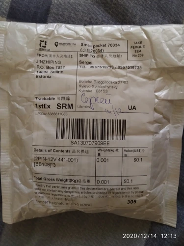 Страна: UA Доставка: Cainiao Super Economy 18.11.2020