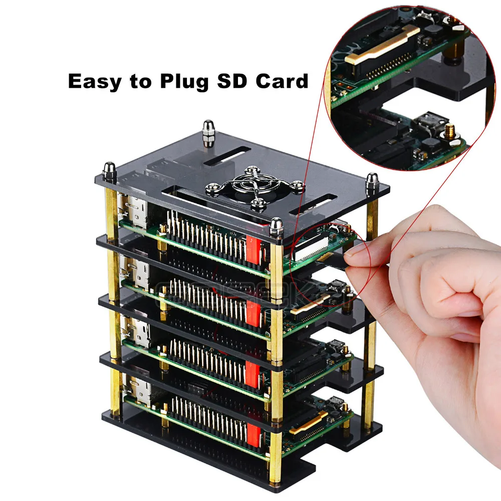 4-слойный акриловый чехол GeeekPi, темно-коричневыйпрозрачный корпус, вентилятор охлаждения, отвертка для Raspberry Pi 4B3B +3B2BB +