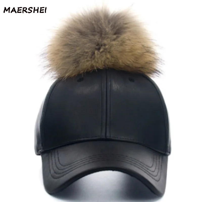 Женская бейсбольная кепка MAERSHEI, теплая Повседневная Кепка из натурального меха, Кепка с помпонами, кожаная кепка в стиле хип-хоп
