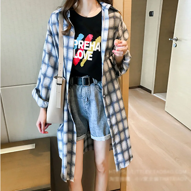VogorSean, летняя женская блузка, рубашка в клетку, 2019 BF, длинный рукав, размера плюс, женская рубашка в клетку, краснаясиняяжелтаябелая