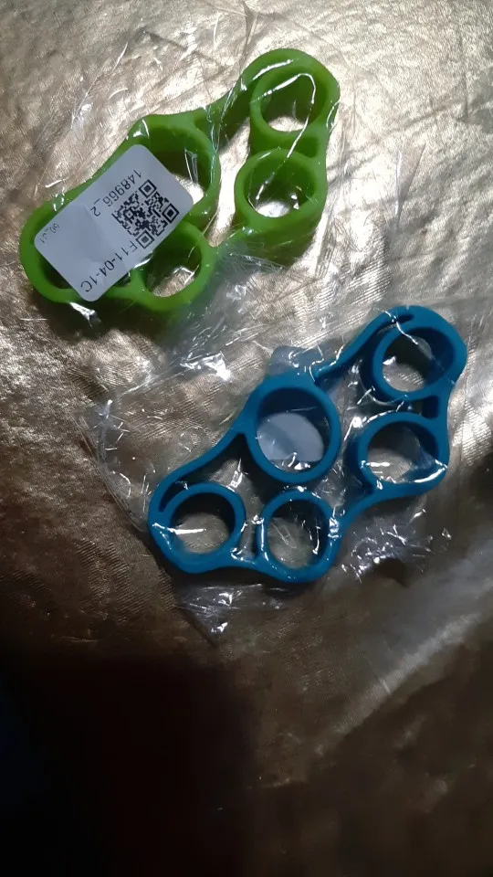 Заказал комплект синие плюс оранжевые, на синих уже хорошо кисти напрягаются, оранжевые "на вырост". В целом доволен. На толстые пальцы не налезет, на мои достаточно худые налезают с трудом.