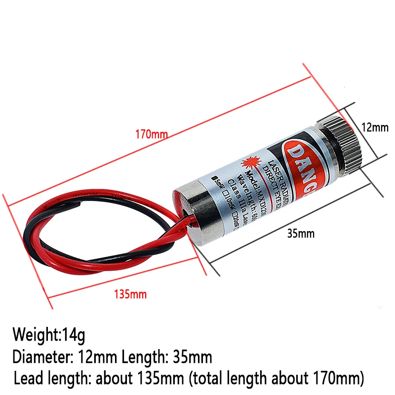 Лазерный модуль с красной линией, 5 мВт, 650 нм, Регулируемая фокусировка, 5 В, промышленный класс, P0.05