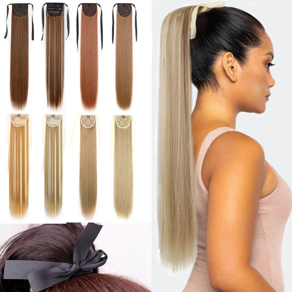 MERISI Синтетические длинные прямые волосы на шнурке конский хвост черные коричневые термостойкие накладные волосы на заколке для женщин