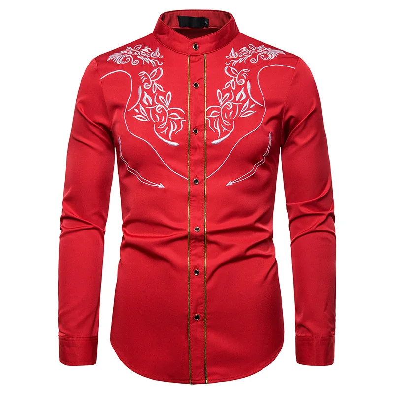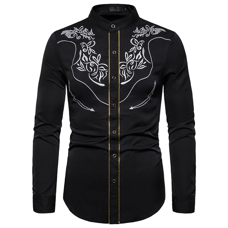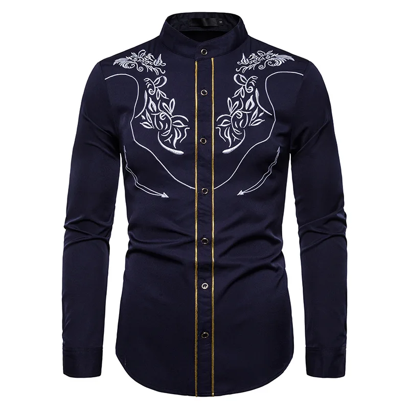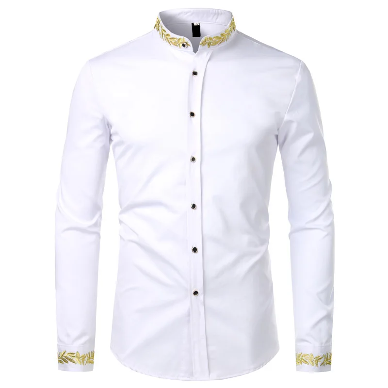 Рубашка мужская с длинным рукавом и воротником-стойкой