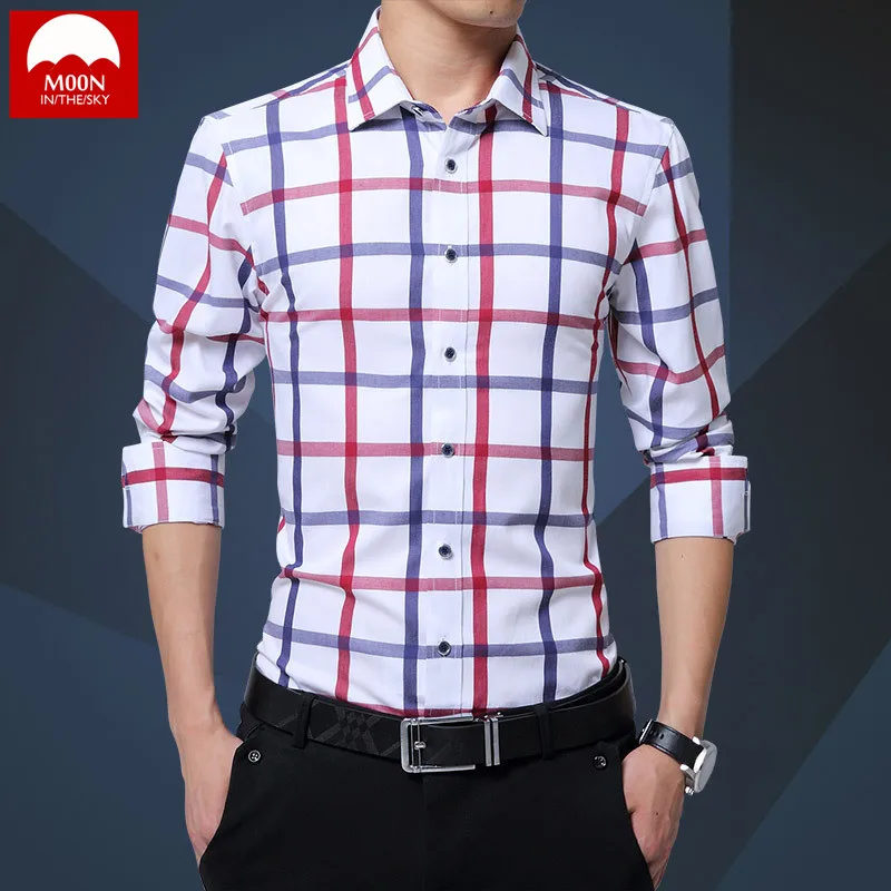 Мужская рубашка в красно-белую клетку MOON, хлопковая рубашка с длинным рукавом в британском стиле, CS-008