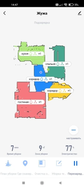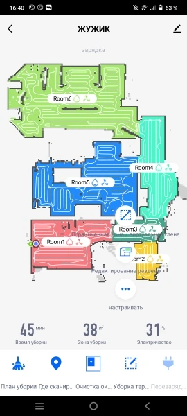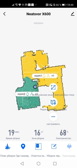 Отличный пылесос! Убирает качественно! Построил карту помещения и теперь гоняет по квартире с закрытыми глазами)), убирает по порядку каждое помещение. После построения карты, немного пришлось её отредактировать, теперь можно отправлять его убирать каждое помещение по отдельности. Убирает на 4+ (оставляет немного мусора в углах, но это особенность этих пылесосов). Из минусов: слабый аккумулятор (квартира 65 кв.м, площадь уборки около 40 кв.м на средней мощности использовал 70% заряда, хотя после первой уборки использовал 55%), функция влажной уборки есть, но, как и у любого такого пылесоса, на мой взгляд, она бестолковая, потому что он просто их протирает микрофиброй, которая через 5 минут уборки становится грязной. Подключение к Wi-Fi без танцев с бубном не обошлось, но вроде всё получилось! Пылесос за свои деньги отличный! И уж точно хуже тех, которые стоят в 2-3 раза дороже (было с чем сравнить). Продавцу большое спасибо! Рекомендую!