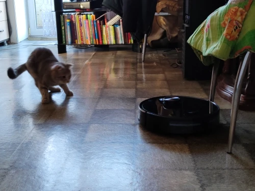 жене понравился, работает тихо и очень умно, по сравнению у родных за 5т который орёт и долбится о всё что видет. на щарядку прям спервого раза залитает. через приложение пока не загружали. жена довольна очень!