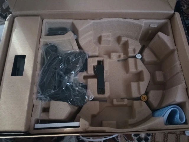 доставка заняла почти месяц. хотя выбирала экспресс доставку, ну да ладно, добрался до меня и хорошо. хорошо был упакован, сколов, трещин и царапин не обнаружила. пока не до конца разобралась как в приложении добавить устройство, хотя не очень и старалась это сделать. мощность хорошая, даже на следующий день после уборки обычным пылесосом собрал достаточно мусора. работает не очень громко, но кот всё равно бежит в засаду и наблюдает за ним. сейчас я довольная как слон, посмотрим как он покажет себя в работе со временем