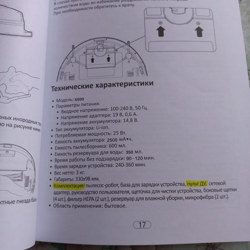 Про доставку, посылка пришла на почту в пределах 10 дней (почему не доставили курьером непонятно). Упаковано в пленку. В комплекте идёт блок для воды, так что продавца я спрашивал зря. Х600 я доволен. Убирает хорошо, но есть нюансы. Он громкий, не думайте, что бесшумный. Я выставил среднюю мощность. Интересно, что он может проехать мимо и не захватить бумажку, но при этом захватить бумажную салфетку, которая забьет весь блок для пыли. Пыль к нему липнет быстро, по-этому приходится протирать его. Но самая пытка была с подключением к приложению. Приложение недопереведено. Если у вас роутер тп-линк или подобный, то берите робота на руки и садитесь рядом (Помните!!! Сеть 2,4!!!). Следуйте инструкции и запасайтесь терпением..Я настраивал долго, раз 10 или больше. Захотелось что сломать или кого-то прибить.) Если не настраивается сразу, то либо вы слишком быстры или приложение слишком тупит. Возможно оба варианта верны.) Карту строит хорошо, даже понимает, где комната, где коридор.