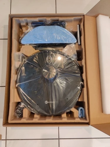 пылесос пришел во время! убирает отлично) нарисовал карту квартиры за пол часа пропылесосил,уже трудится моет) с приложением работает отлично, единственное не мог подключится к вай фай,связать его с приложением,но как только открыл инструкцию все стало ясно) инструкция на русском) за пару часов использования могу сказать следующее, пылесосит отлично! после установки контейнера мойки обязательно проверяйте защелкнулся он или нет) потому что когда он переезжал в другую комнату через порожек,потерял контейнер для мойки и чилил в комнате без контейнера) визуально выглядит дорого! собака присматривается, надеюсь не трах..т его