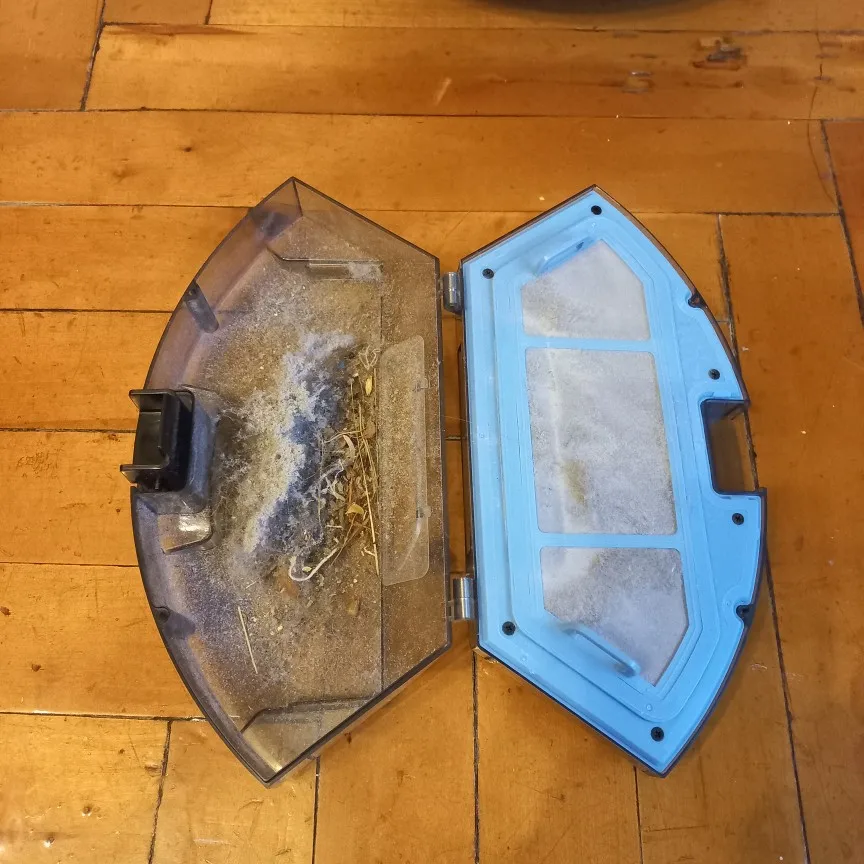 Пока весьма довольна роботом. Посылка пришла быстро в Голландию, за 10 дней. Подключение к WiFi прошло успешно, подробная инструкция на русском, английском и др языках прилагается. Робот не сильно шумит, не делает ненужных движений, карту воссоздал очень точно, все препятствия обходит аккуратно, не врезается, лестницу обошел стороной, датчики работают очень чётко. Классный агрегат, свою цену пока полностью оправдывает. Пылесборники для сухой и влажной уборки разные. Запустила робот на следующий день после уборки и он собрал довольно много пыли, см фото. Приложение простое, удобное. Сам робот прост в эксплуатации, съёме пылесборника и проч, всё довольно нативно.