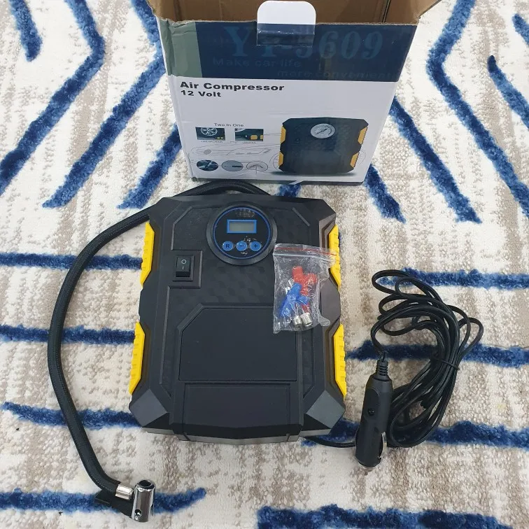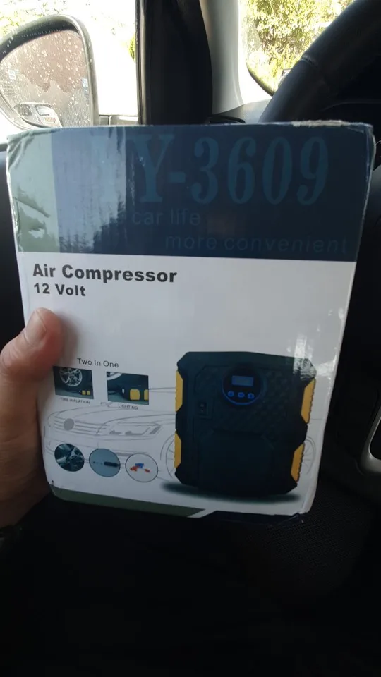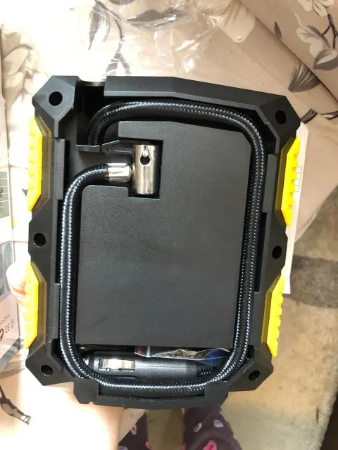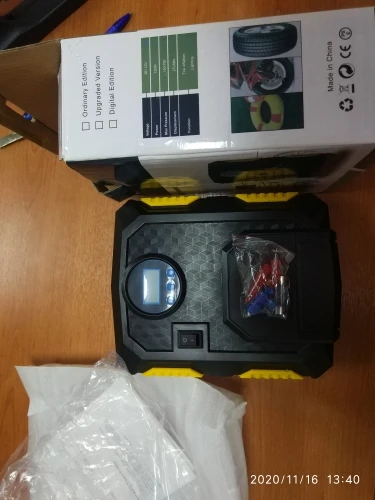 Это была очень быстрая доставка, и товар очень хорошо упакован. Компрессор выглядит твердым и хорошего качества, имеет небольшой свет при использовании в темноте. Это немного шумно, как и все компрессоры, но это не перегибание, кабель, шланг и аксессуары хорошо собранны в том же корпусе аппарата. Я думаю, что соотношение цены и качества очень хорошее, и это очень практично, и это стоит того, чтобы всегда носить его в машине.