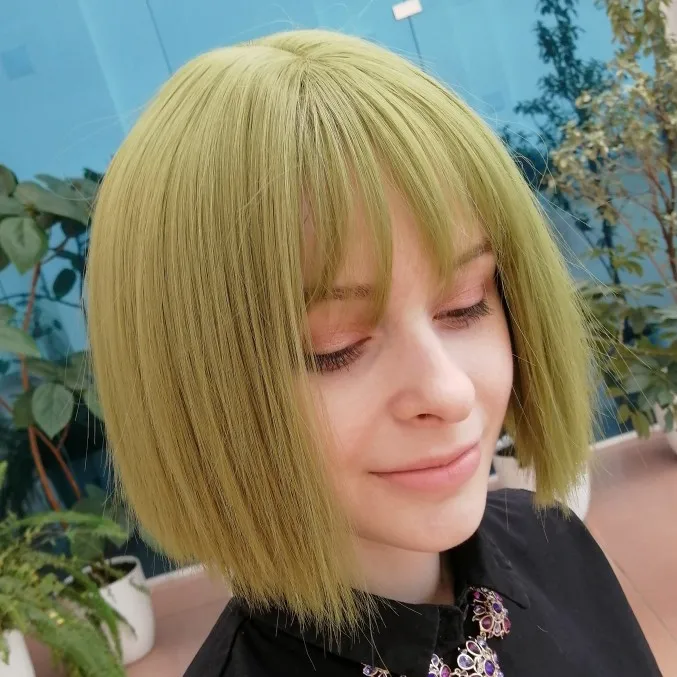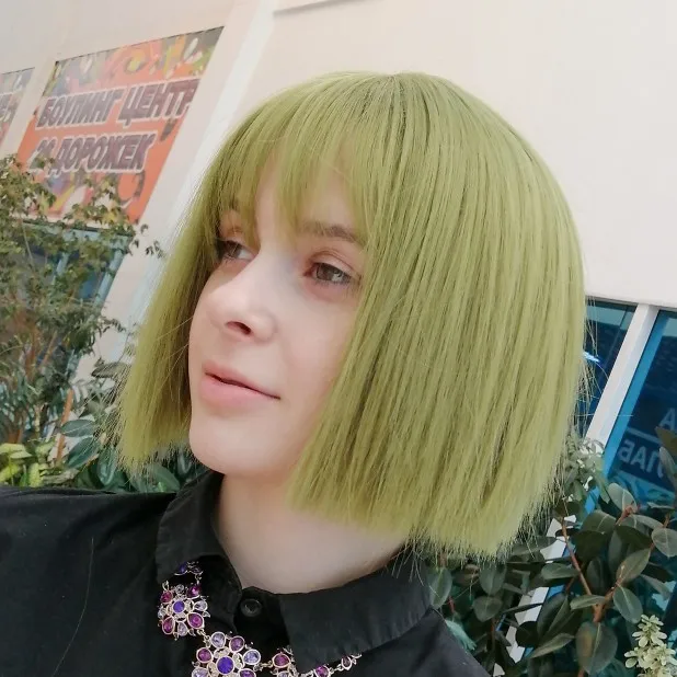 Товар долетела до меня за две недели,посылка отлеживалась до получения . Доставка очень быстрая для парика, чему я осень рада. Заказывала его себе для фотосессии и просто давно хотела посмотреть на себя с ярким цветом волос, так как волосы у меня тоже короткие , то было довольно интересно посмотреть на себя с новым цветом волос. Челка на удивление неплохо выглядит, за такую небольшую цену парик и правда очень даже хороший, так что смело его вам рекомендую. Длина: 30 см Все как на картинке , цвет яркий .