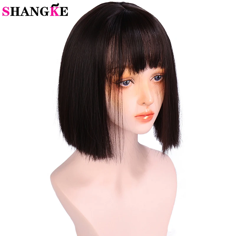SHANGKE синтетический короткий прямой черный парик Лолиты с челкой термостойкий Боб косплей парик для женщин вечерние НКАЕжедневный парик