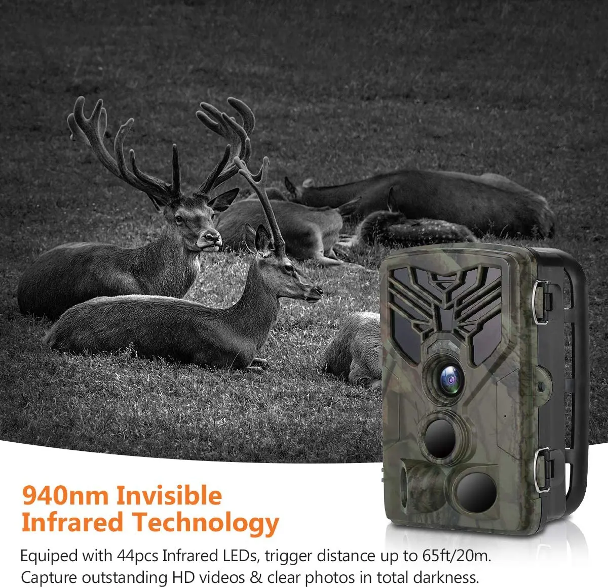 ❉ 3. Идеальное Обнаружение и дальность вспышки: используя современный датчик обнаружения нескольких зон, камера Trail оснащена углом обнаружения 120 ° и диапазоном обнаружения 65 футов, который идеально подходит для поля обзора 120 °
