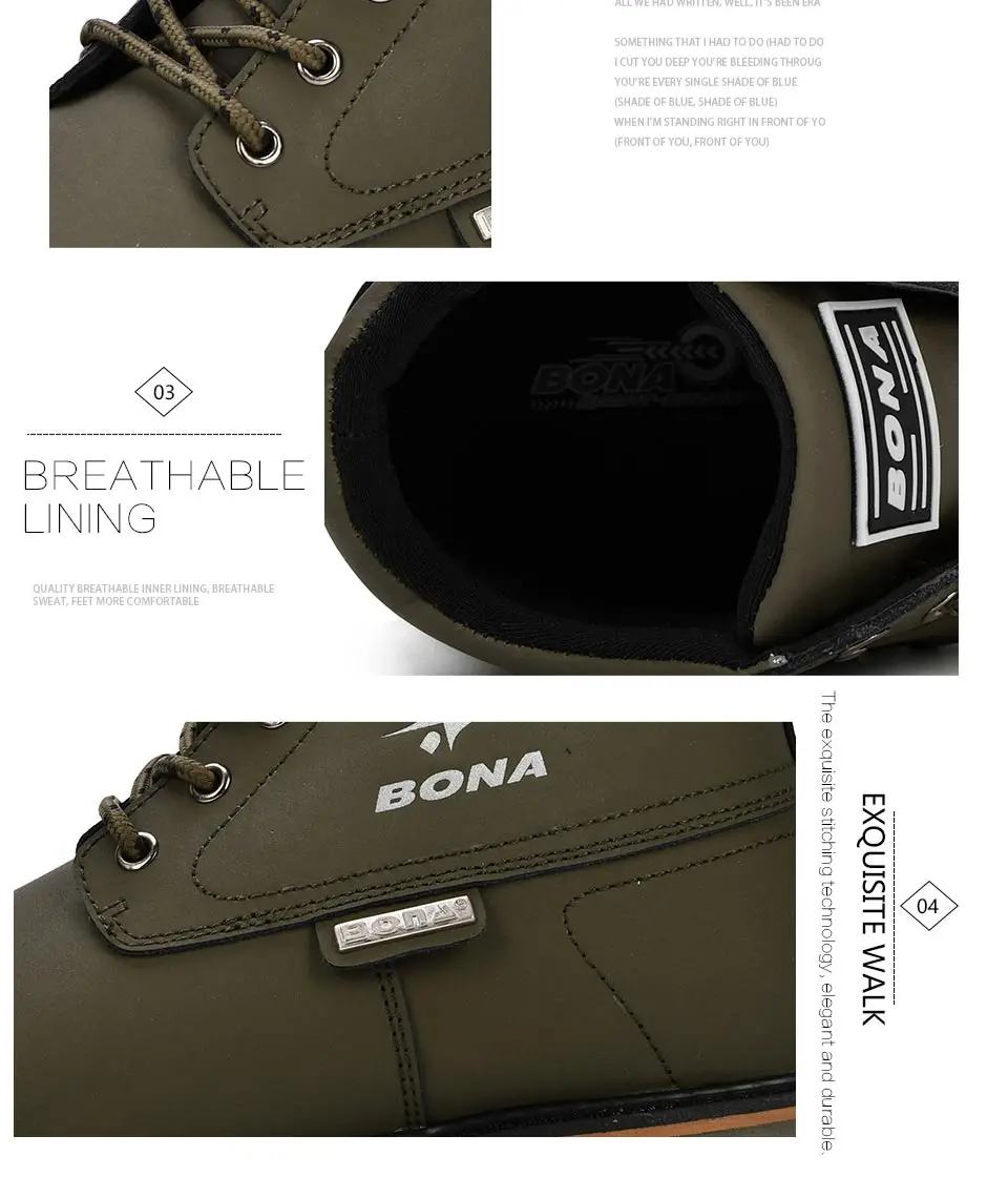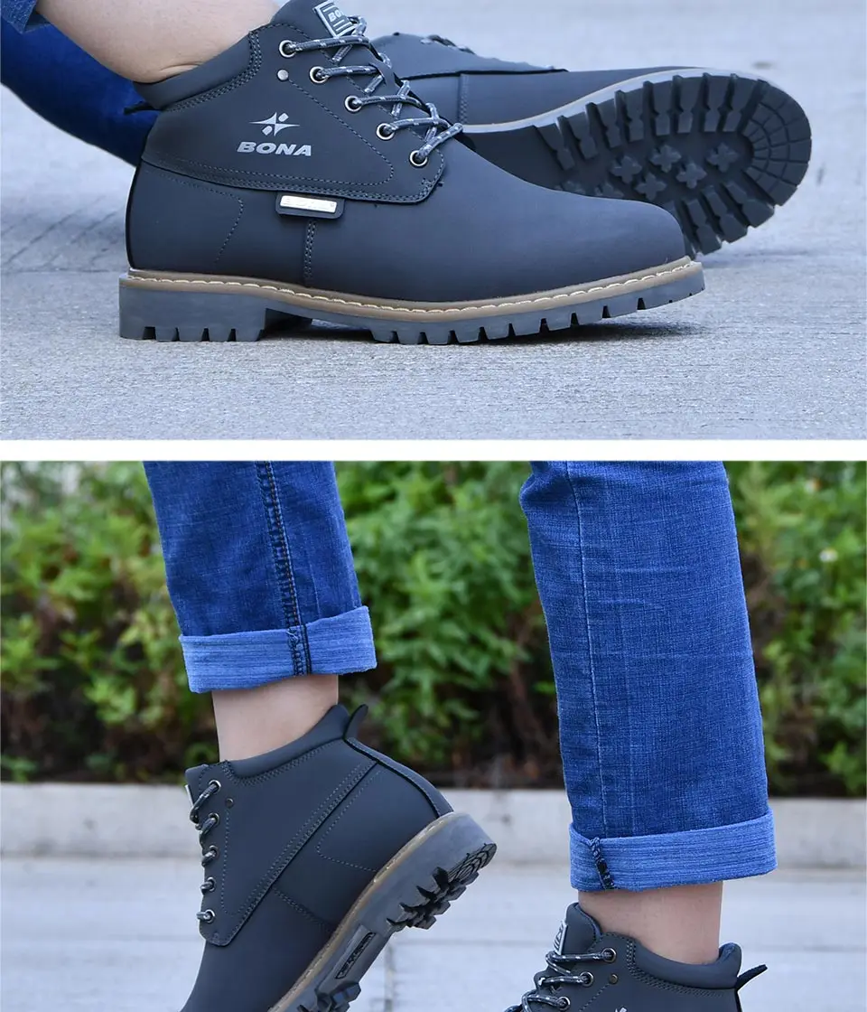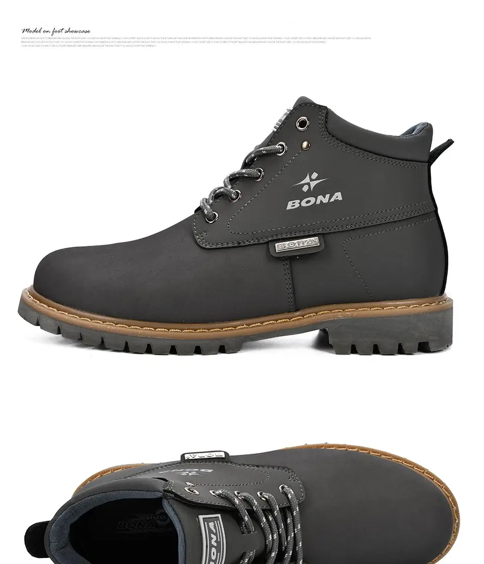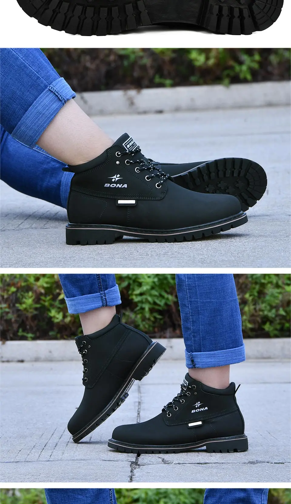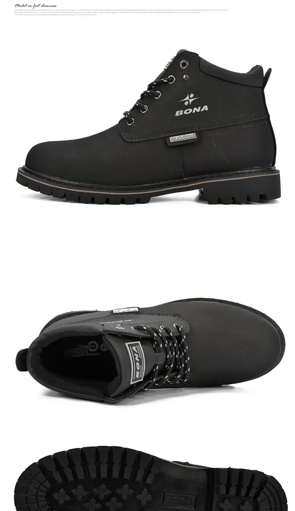Ботинки мужские кожаные BONA, демисезонные, повседневные, уличные, удобные
