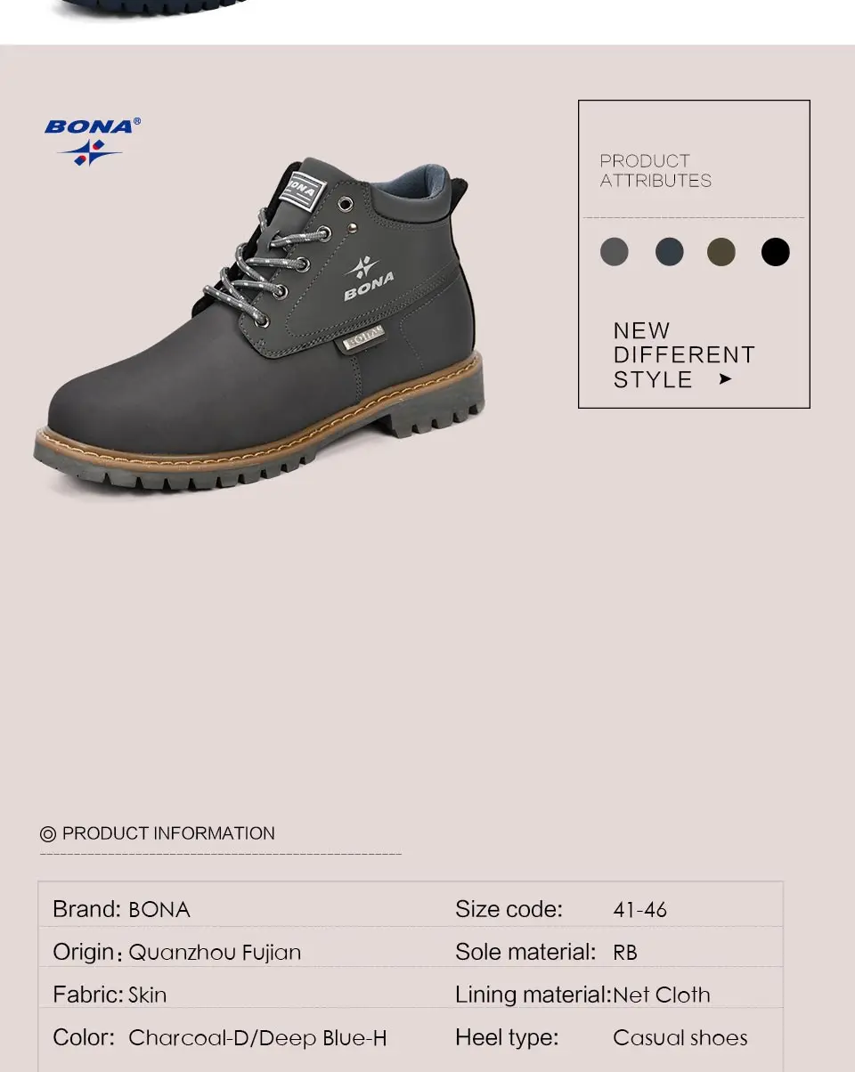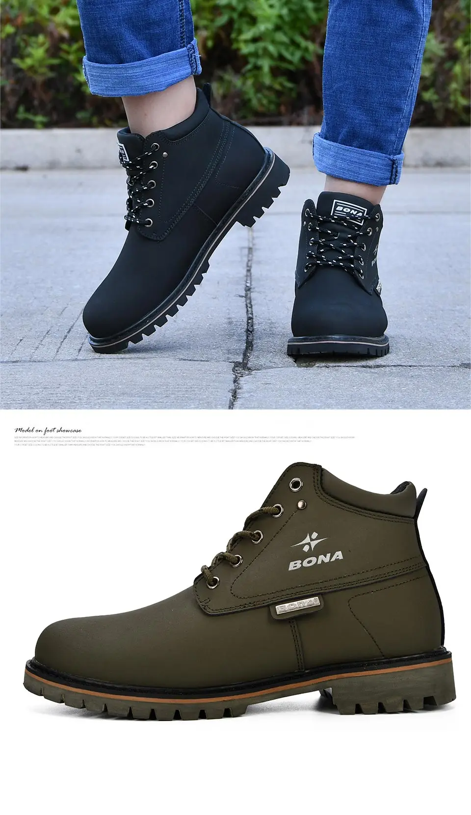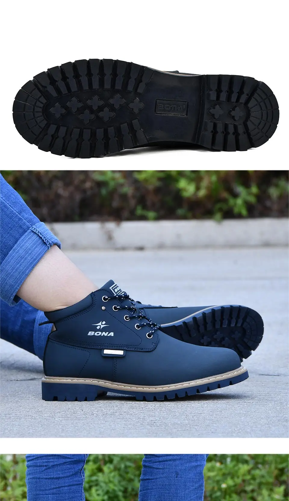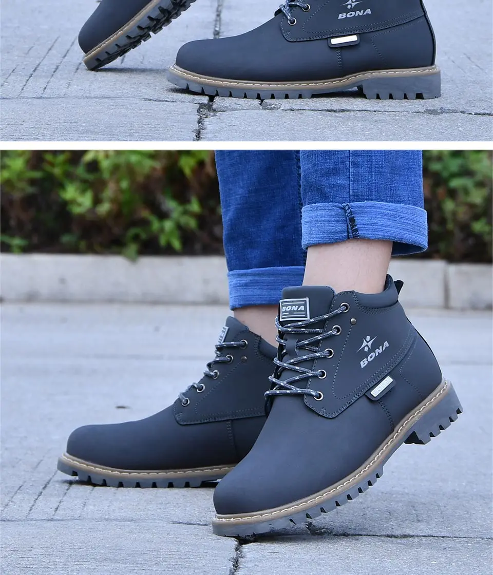 Ботинки мужские кожаные BONA, демисезонные, повседневные, уличные, удобные
