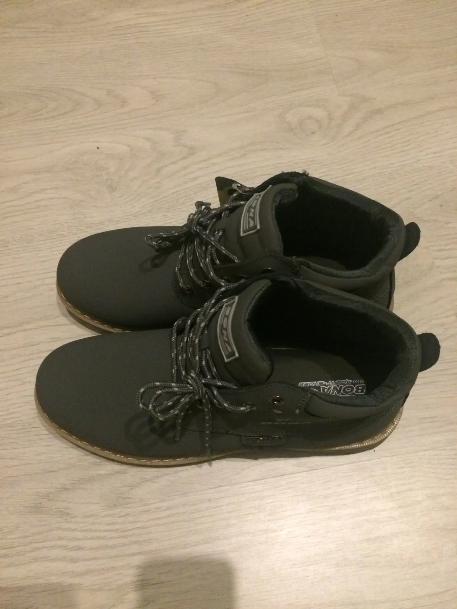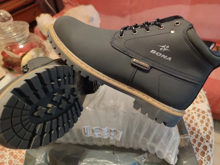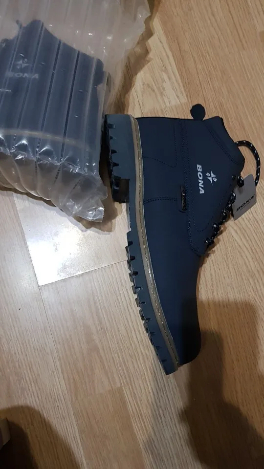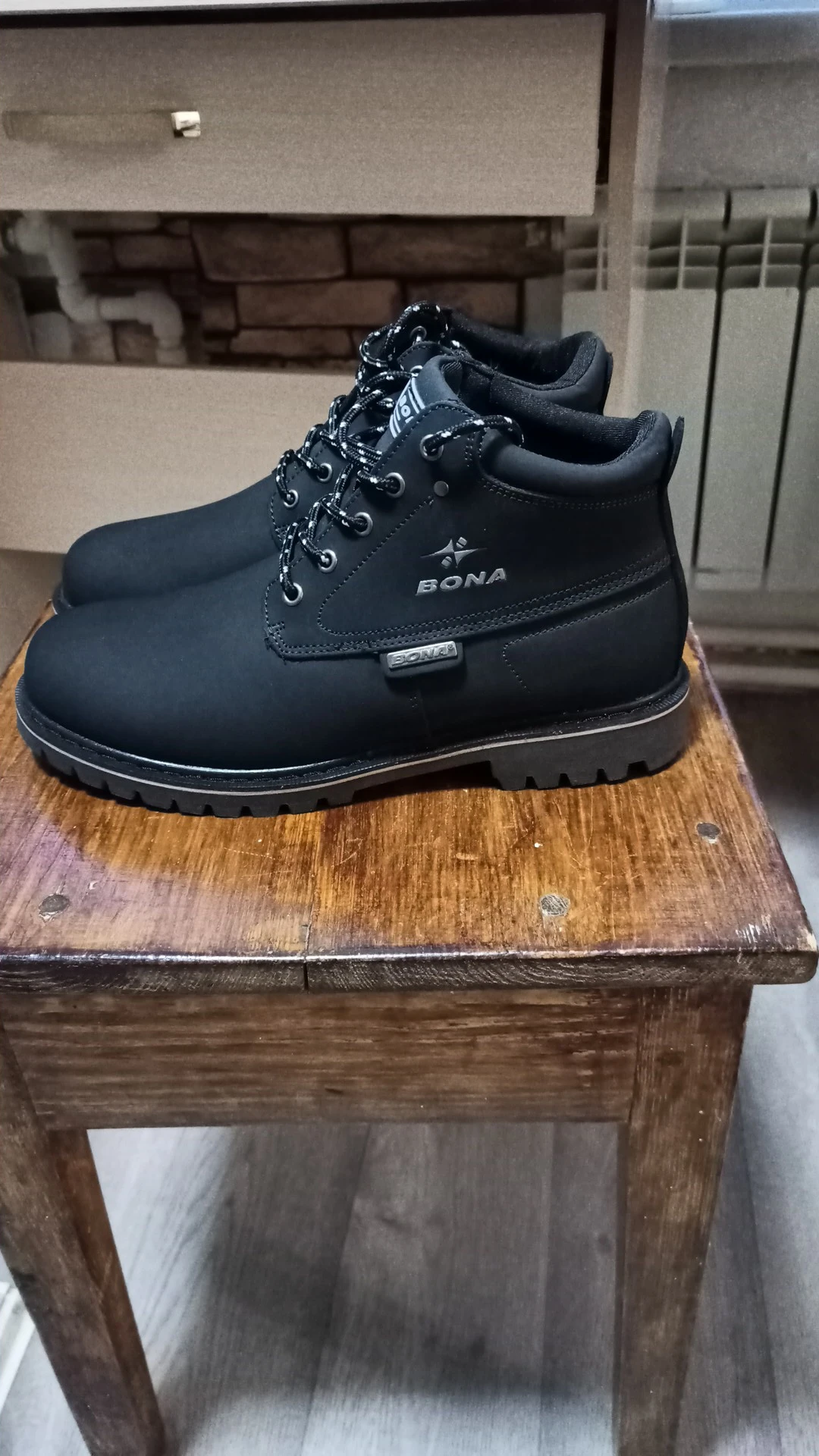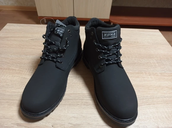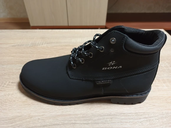 Товар пришел в Узбекистан/Ташкент +/- за месяц . ПРИ ЗАКАЗЕ ОБРАТИТЕСЬ К ПРОДАВЦУ ПО ВОПРОСАМ РАЗМЕРОВ По таблице на мою ногу 27,2 подходит 9 размер (43) , в реале ботинки на 2,5 см больше чем моя нога. Ботинки с виду хорошие , но только с виду . На деле как мне показалось это липа , ориг. "Боной" тут и не пахнет . Стельки полный шлак , под стелькой картон и сразу резиновая подошва , ботинки сильно холодные и подойдут разве что на теплую осень / весну . Вся обувь пришла в пятнах клея , на подошве масляные разводы , естественно это не отмывается . Пришлось открывать спор на частичный возврат . Не знаю откуда столько хваленных отзывов , люди видимо нормальную обувь в глаза не видели ! За ту же цену можно взять кожаную обувь неплохого качества , заказать решил потому что ориг. бона мне нравится , хорошо носится , недорого стоит , но это не тот случай . Будьте внимательны при заказе , это не качество к которому вы привыкли покупая товар от BONA !