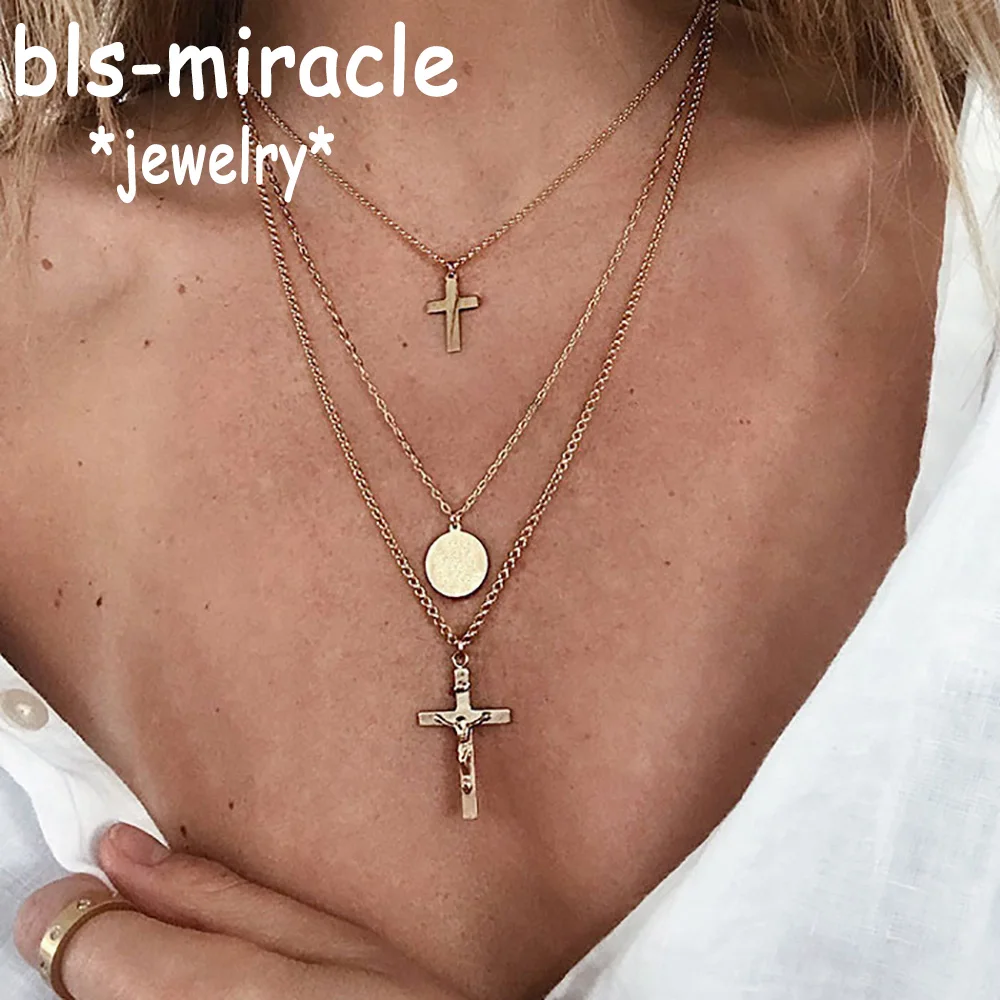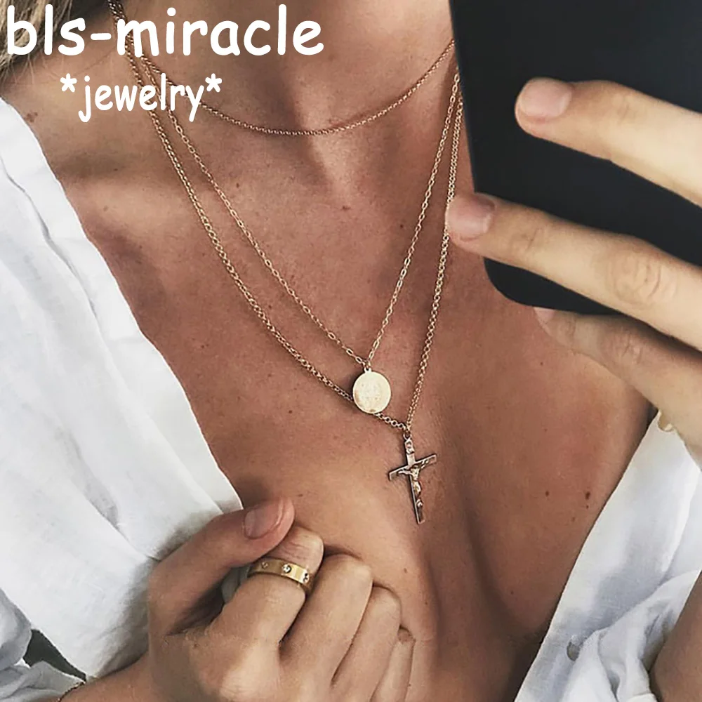 Necklace WomenLong Necklace Female Cross Multilayer Bead Necklace