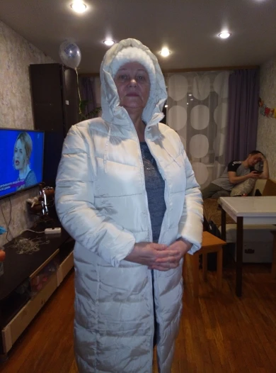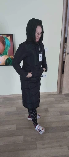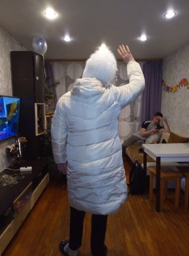 Пуховик очень понравился. Он длинный, рукава нормальной длины, достаточно плотный, так что думаю, что зимой в нем холодно не будет. Сшит прилично. 5XL на объем груди 104 см сел хорошо. Не в облипку, но и не болтается. Товар за такие деньги просто супер!