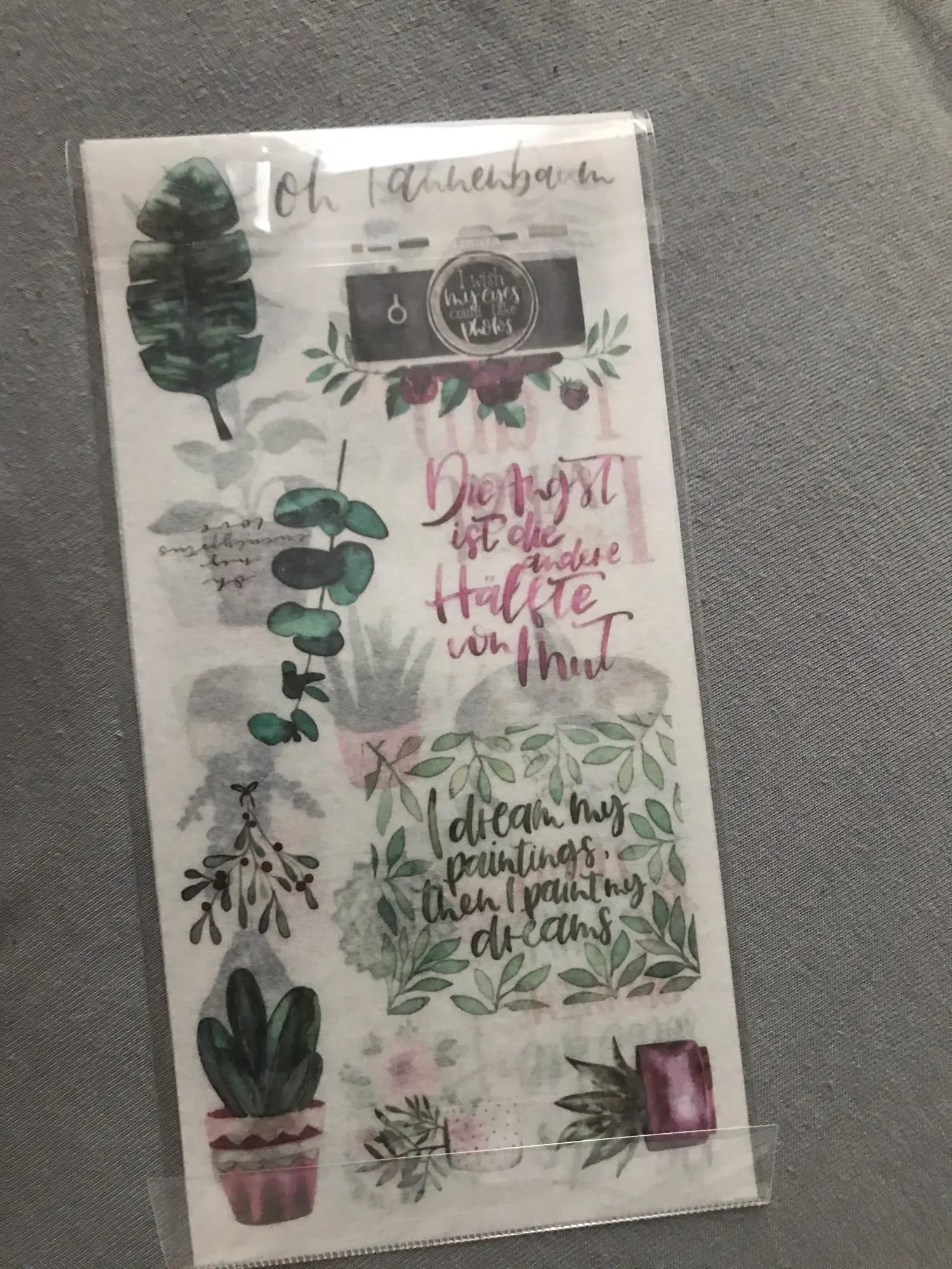 Наклейки не предварительно вырезаны, вы должны сделать их самостоятельно, но они милые. Мне нравятся детали о растениях, просто удивитесь, что они больше цитат в deutch, что на английском, но это нормально, я буду узнавать новые слова в deutch затем ^