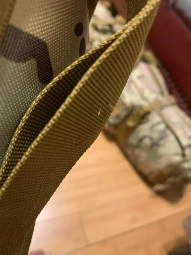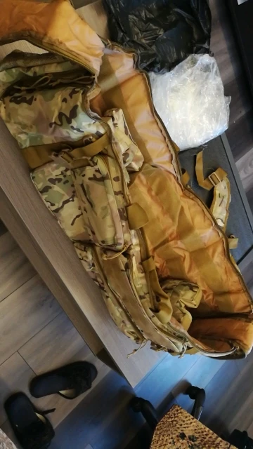 чуть задержали с доставкой(+4 дня к заявленным). с учётом доставки, цена получилась 2500 руб. друг заказывал за 2700 руб, у другого производителя. так вот, разница не особая, но есть: много торчащих ниток, пошито "так себе", не пришита вторая часть лямки с карабином - одна из трёх, что поверх основного замка сумки, подставки под оружие, ну уж очень мягкие