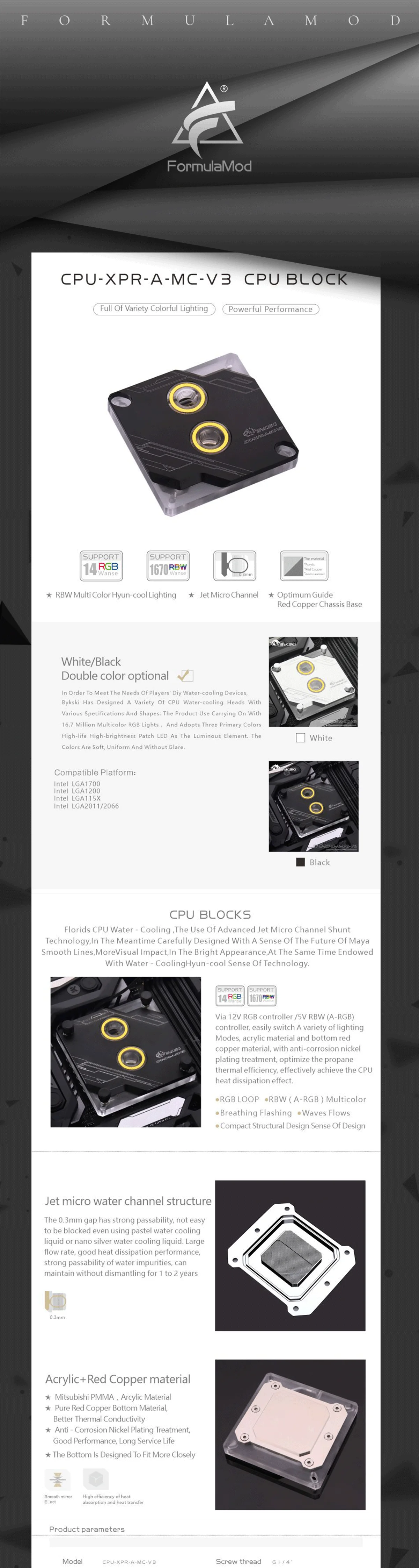 Bykski CPU-XPR-A-MC-V3 CPU водяной блок для Intel Lga115x170020112066 RBW RGB системы Microwaterway водяного охлаждения
