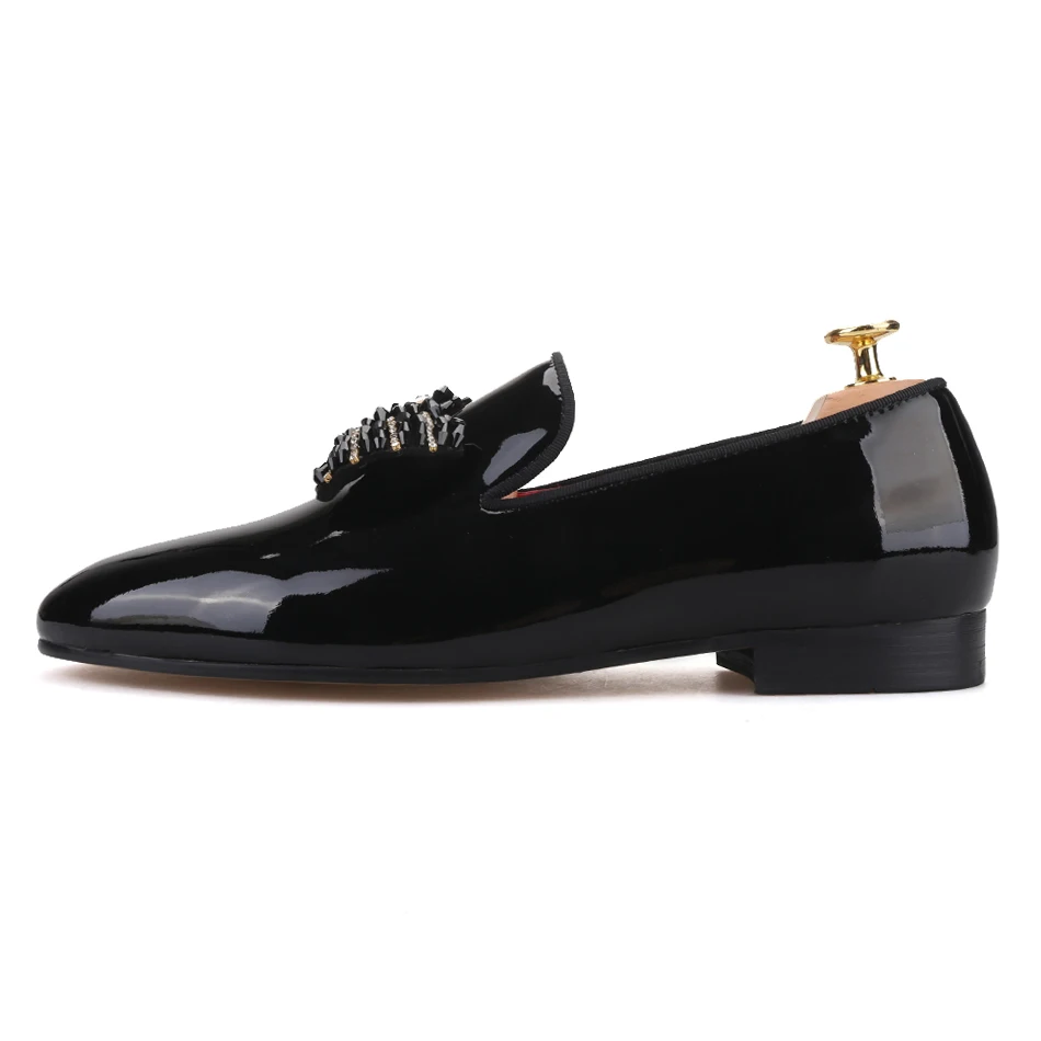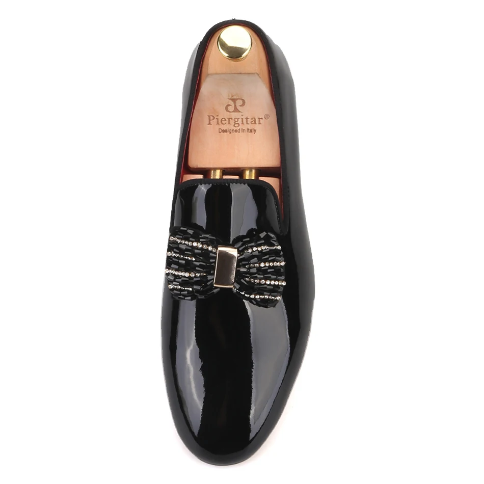 Мужские лоферы ручной работы из лакированной кожи Piergitar, черные вечерние туфли с бантом, украшенные стразами, для выпускного вечера, 2019