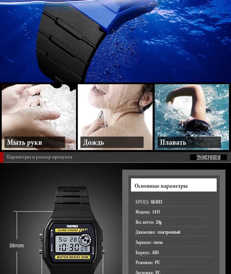 SKMEI 1413 мужские и женские светодиодные цифровые часы, спортивные...