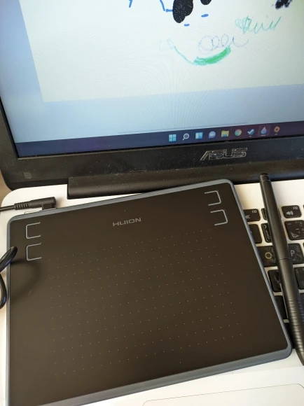 Планшет понравился. Брала для первого опыта. На Win 11 Pro работает даже без дров. На фото только зарисовка. Перчатки в комплекте нет, но и без неё можно рисовать. За эти деньги прекрасный планшет. Если у кого-то уже есть опыт, то лучше заказать более лучшую модель. Эта подходит новичкам