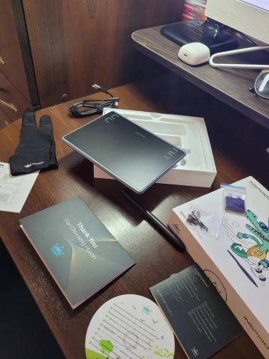 Крутой планшет за адекватную стоимость! Пришёл быстро курьерской доставкой dpd прямо домой! Шикарно! Драйвера скачал с сайта на маке м1 работает спокойно) перчатки в комплекте не было, но вроде это и не заявлено) переходники на месте ) доволен ! Осталось только привыкнуть к маленьким размерам) до этого был планшет формата а4 )