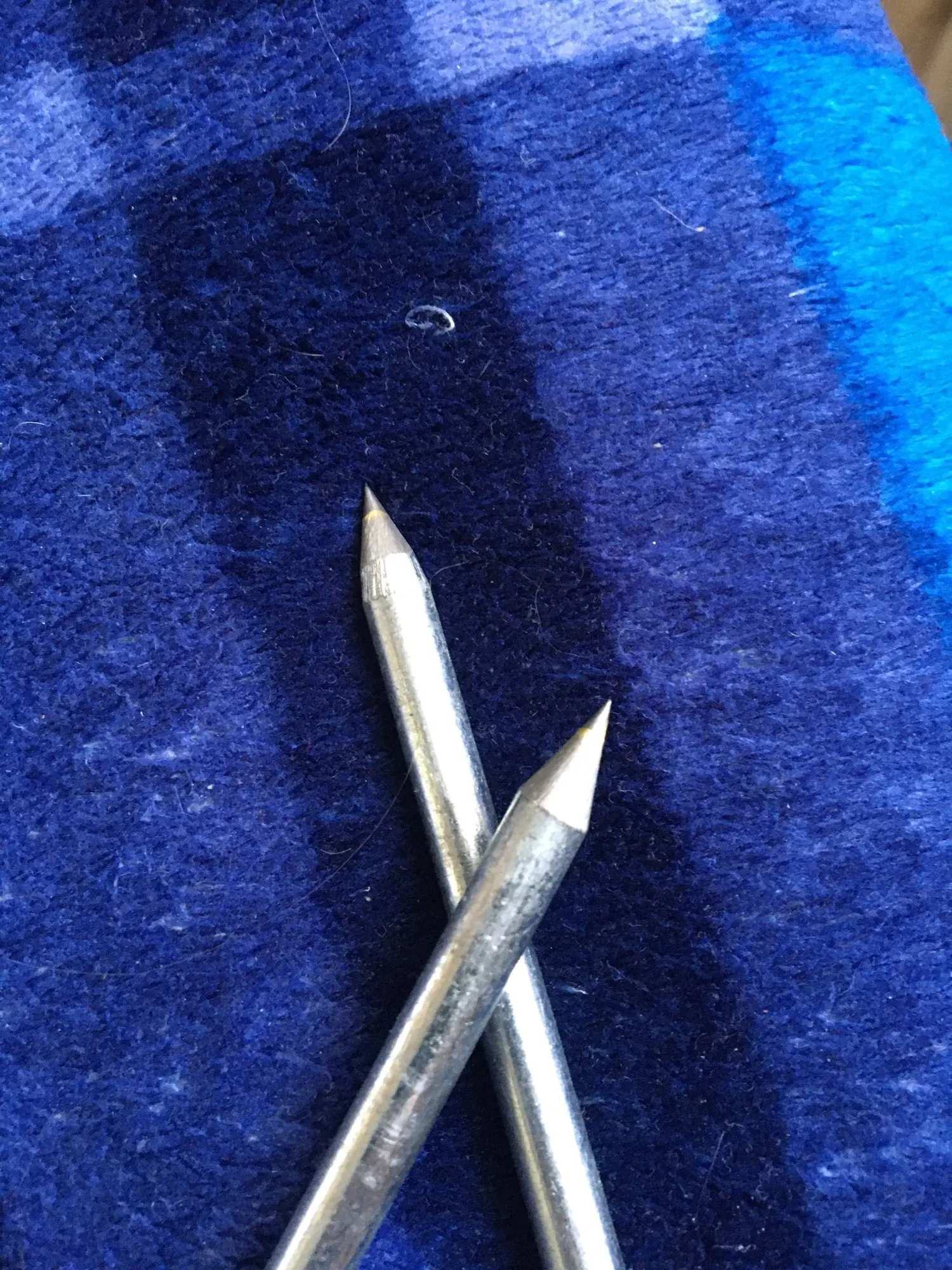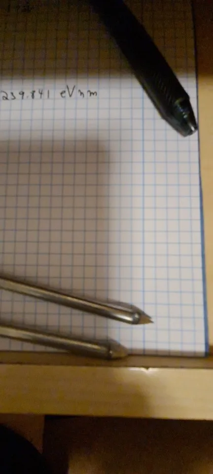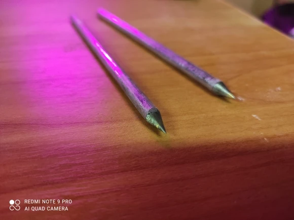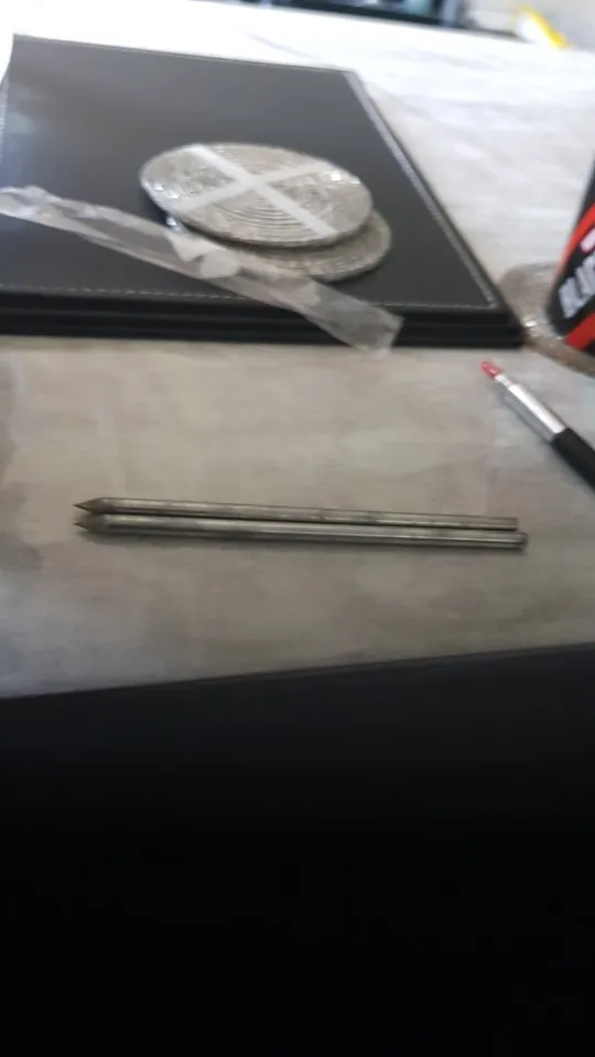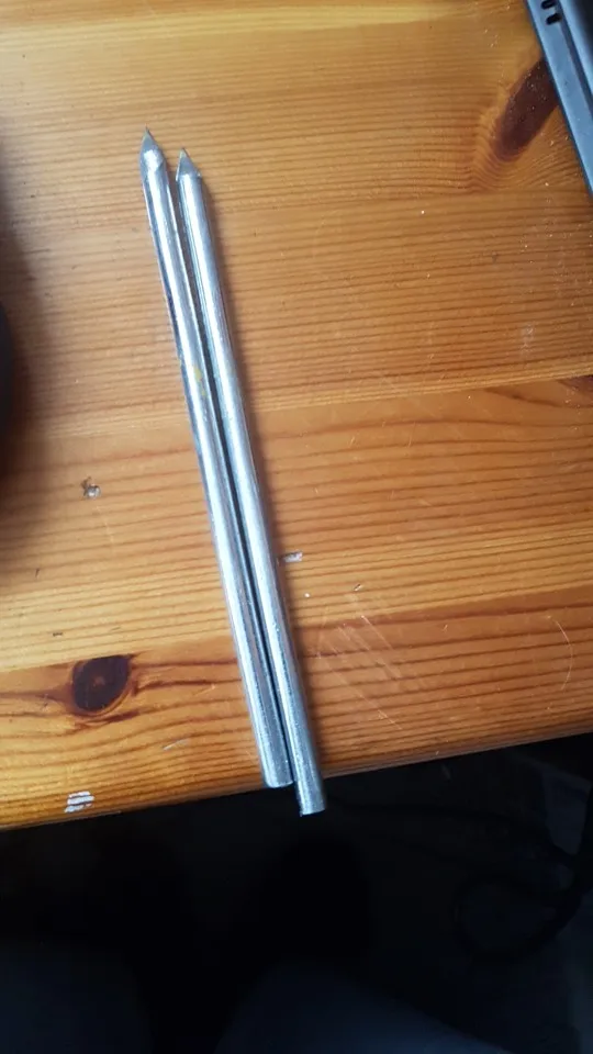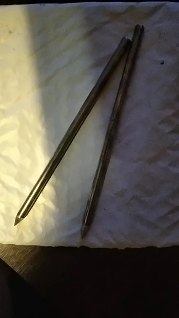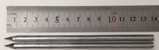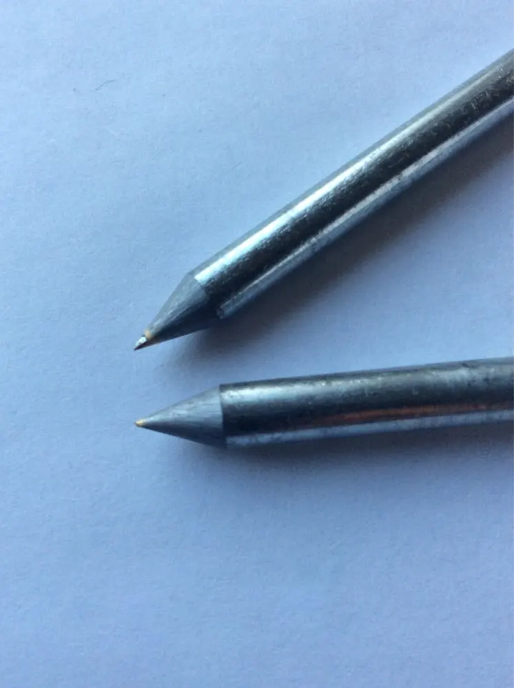 В стальной стержень впаян острый кончик, похож на вольфрам.
