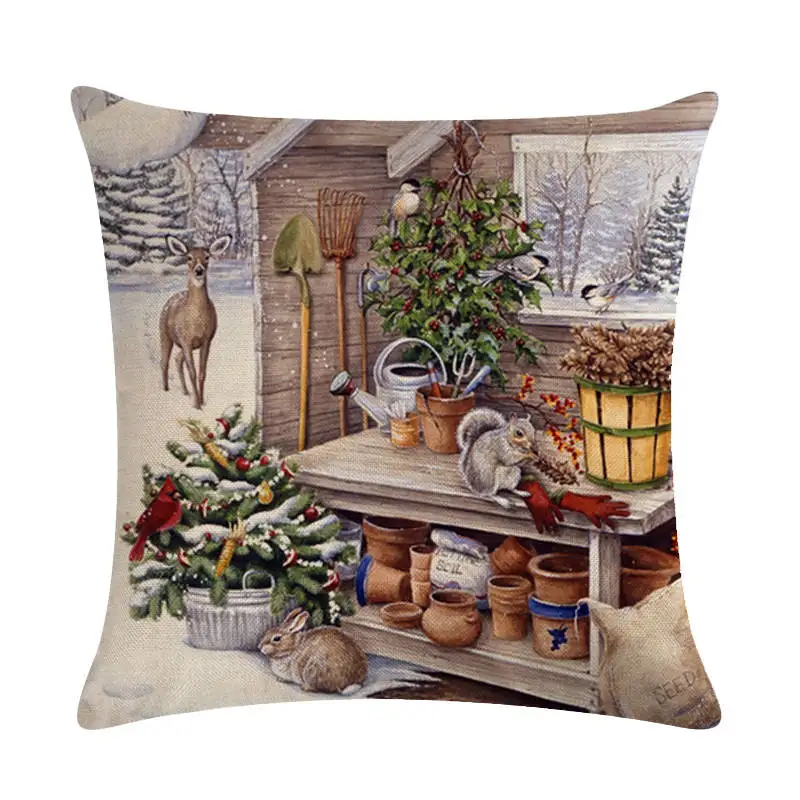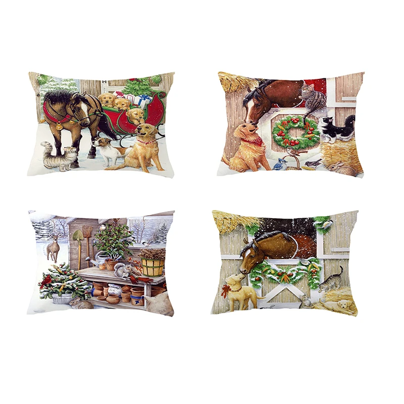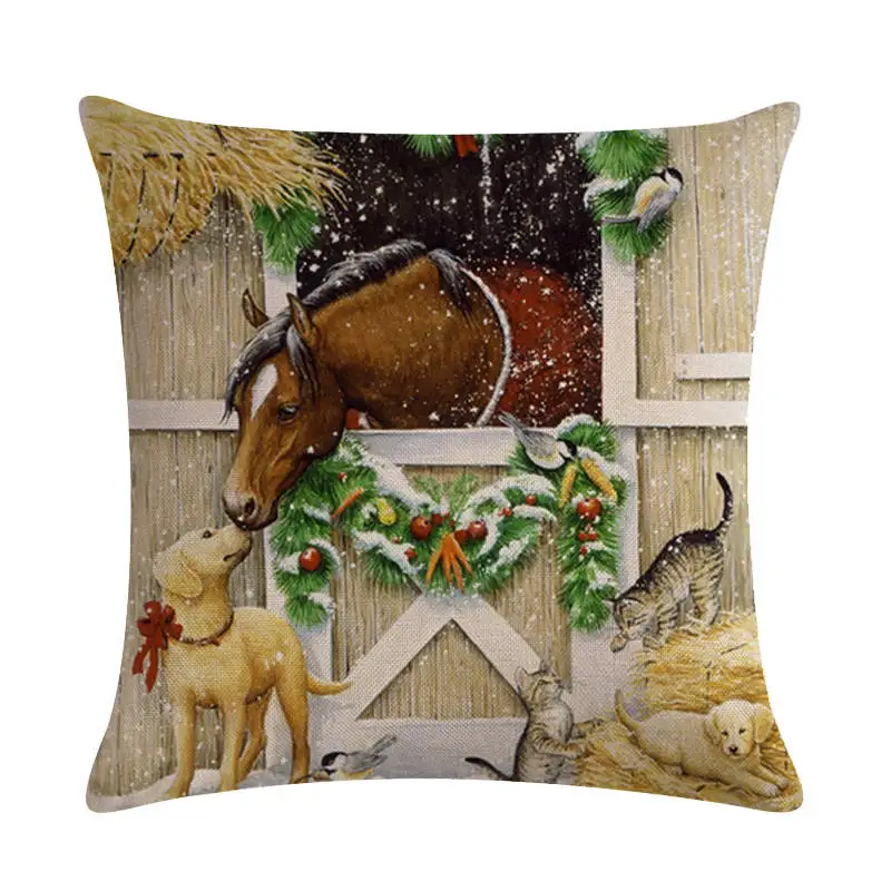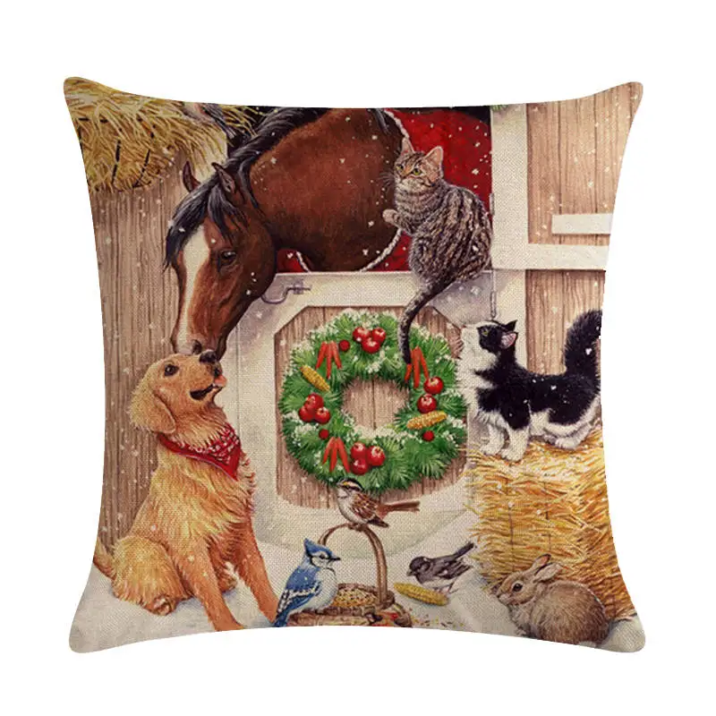 Чехол на рождественскую подушку с рисунком лошади, кошки, дизайнерский льнянойхлопковый Чехол на подушку с изображением собаки, декоративный Чехол на подушку ZY482