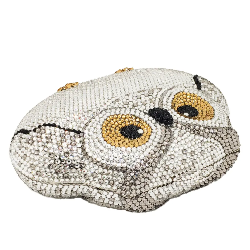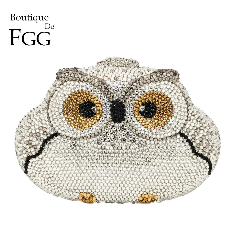 Женский Блестящий клатч Boutique De FGG, Серебристый клатч в виде совы с кристаллами, вечерняя сумочка для свадьбы, коктейвечерние, сумочка и кошелек с бриллиантами