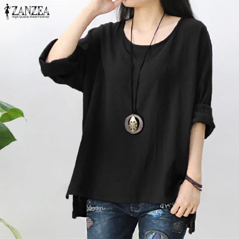Женская винтажная блузка с длинным рукавом, из хлопка и льна