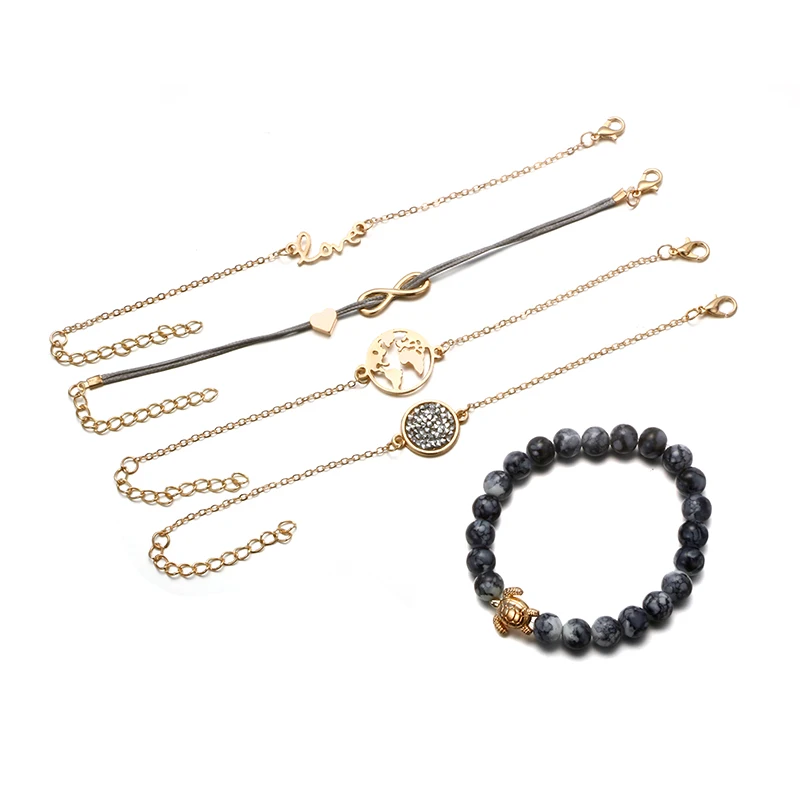 5 шт.компл. женский браслет с подвесками в виде черепахи, сердца, б...