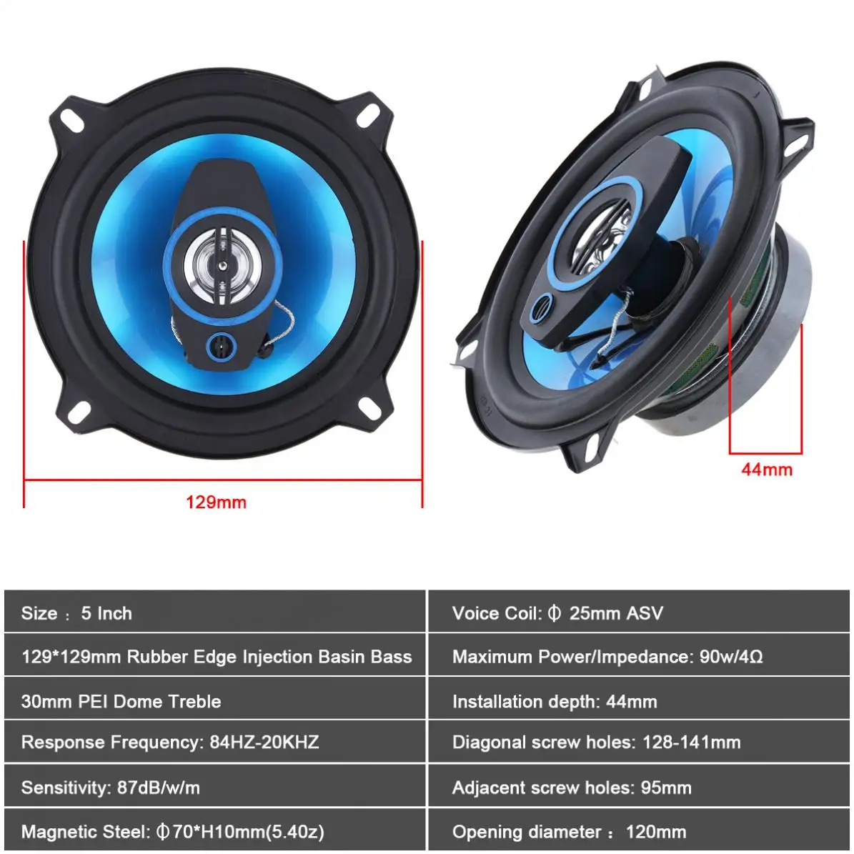 1 пара, автомобильные коаксиальные Hi-Fi колонки, 5 дюймов, 400 Вт