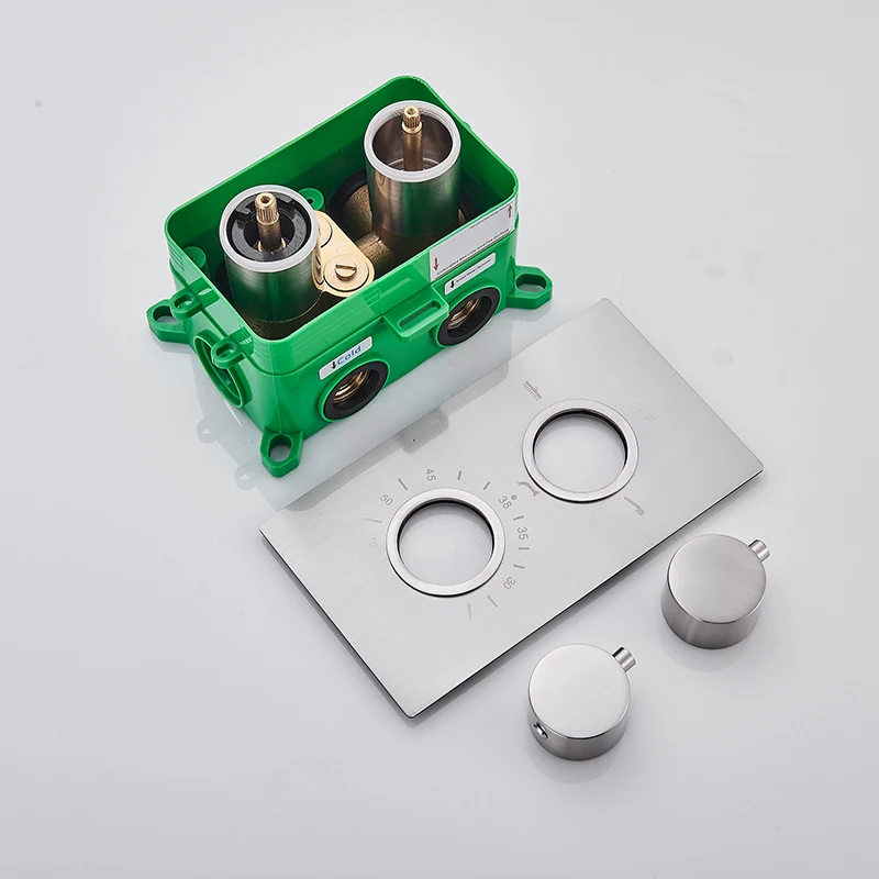 Хромированный термостатический смесительный клапан с двойной ручкой контроль температуры душа контрактный клапан со скрытым картриджем для смесителя