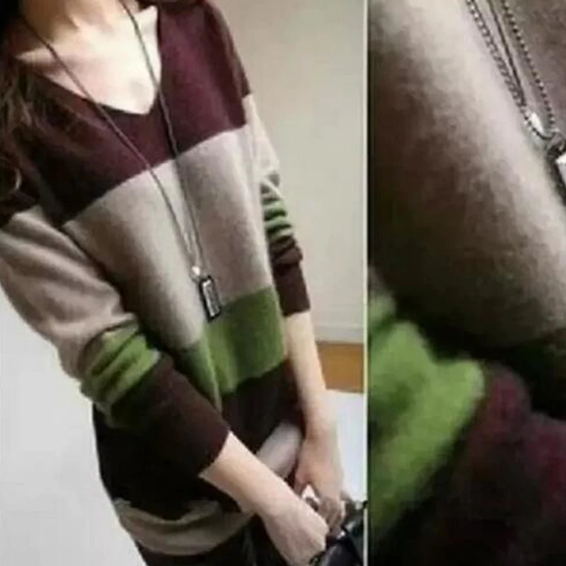 Женский кашемировый свитер с V-образным вырезом, осенне-зимний вязаный пуловер в полоску