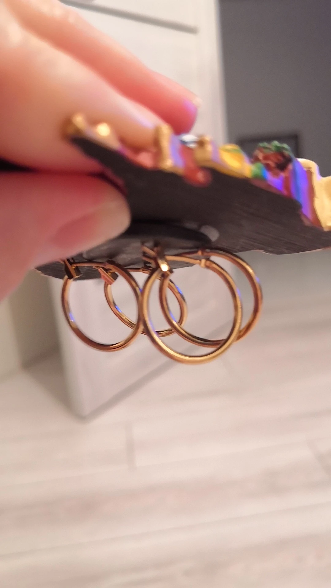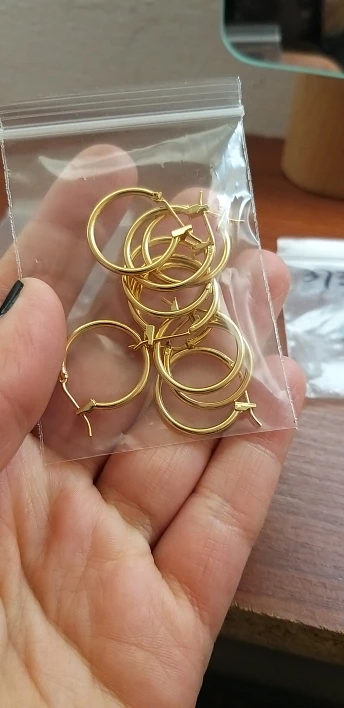 Второй раз я покупаю эти кольца, качество очень хорошее, и способ их отправки идеален. Каждая пара колец в индивидуальной сумке. Очень доволен. Они не становятся черными со временем и могут быть даже мокрыми. Качество идеальное, и они очень благоприятные. Я буду покупать снова.