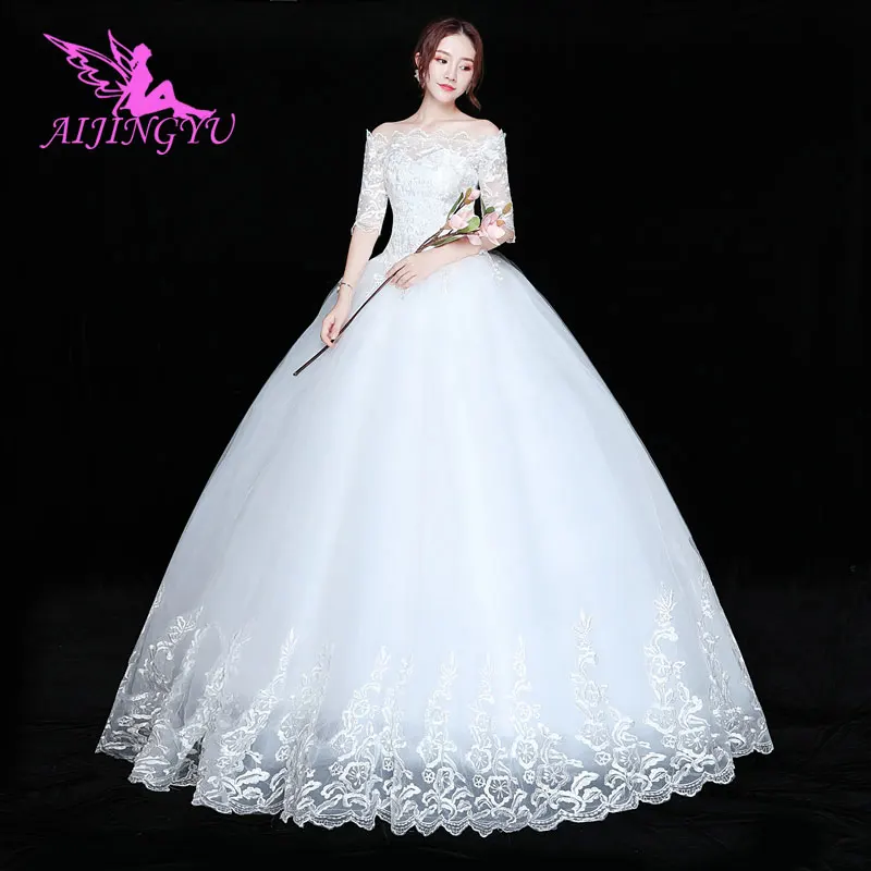 AIJINGYU 2021 2020 свадебное новое горячее предложение Дешевое бальное платье со шнуровкой на спине женское свадебное платье FU116